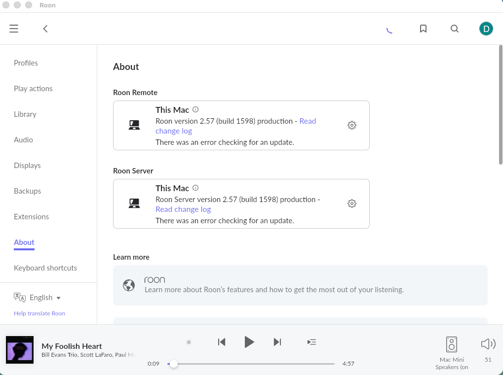 - Performing a fresh backup of my Roon database.