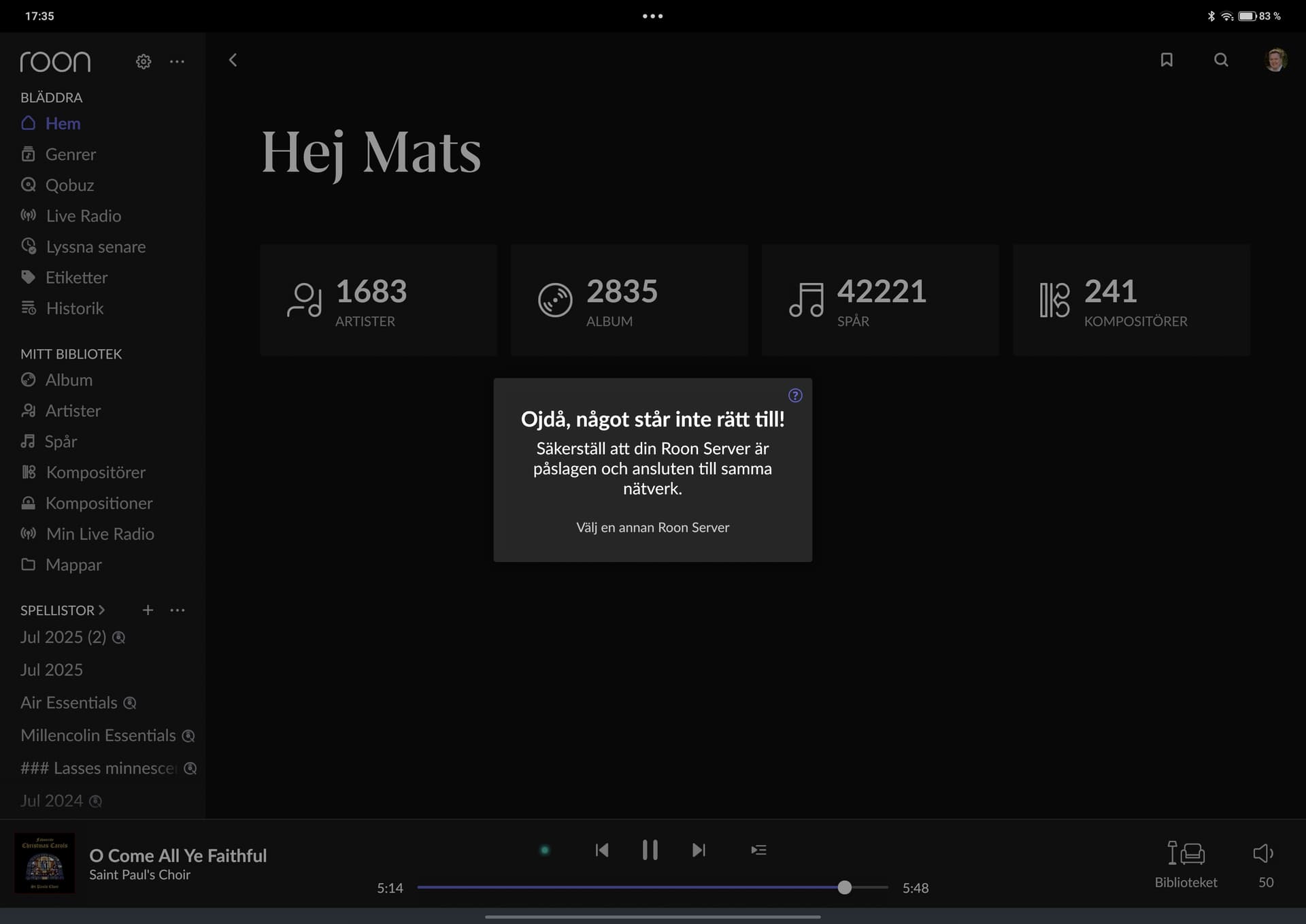 One thing I noticed just now: it seems that when I use only one Android control point (for example my S25+) it runs in a stable way, but if I simultaneously starts the Roon app on another CP (my Onepad tablet for example) both android apps/CP:s looses touch with the Roon core and starts to behave unstable. Sometimes though it’s only possible to connect with one Android CP at a time: the other one just states “Looking for your Roon server”. This doesn’t seem very logical to me but I want to mention it none the less.
