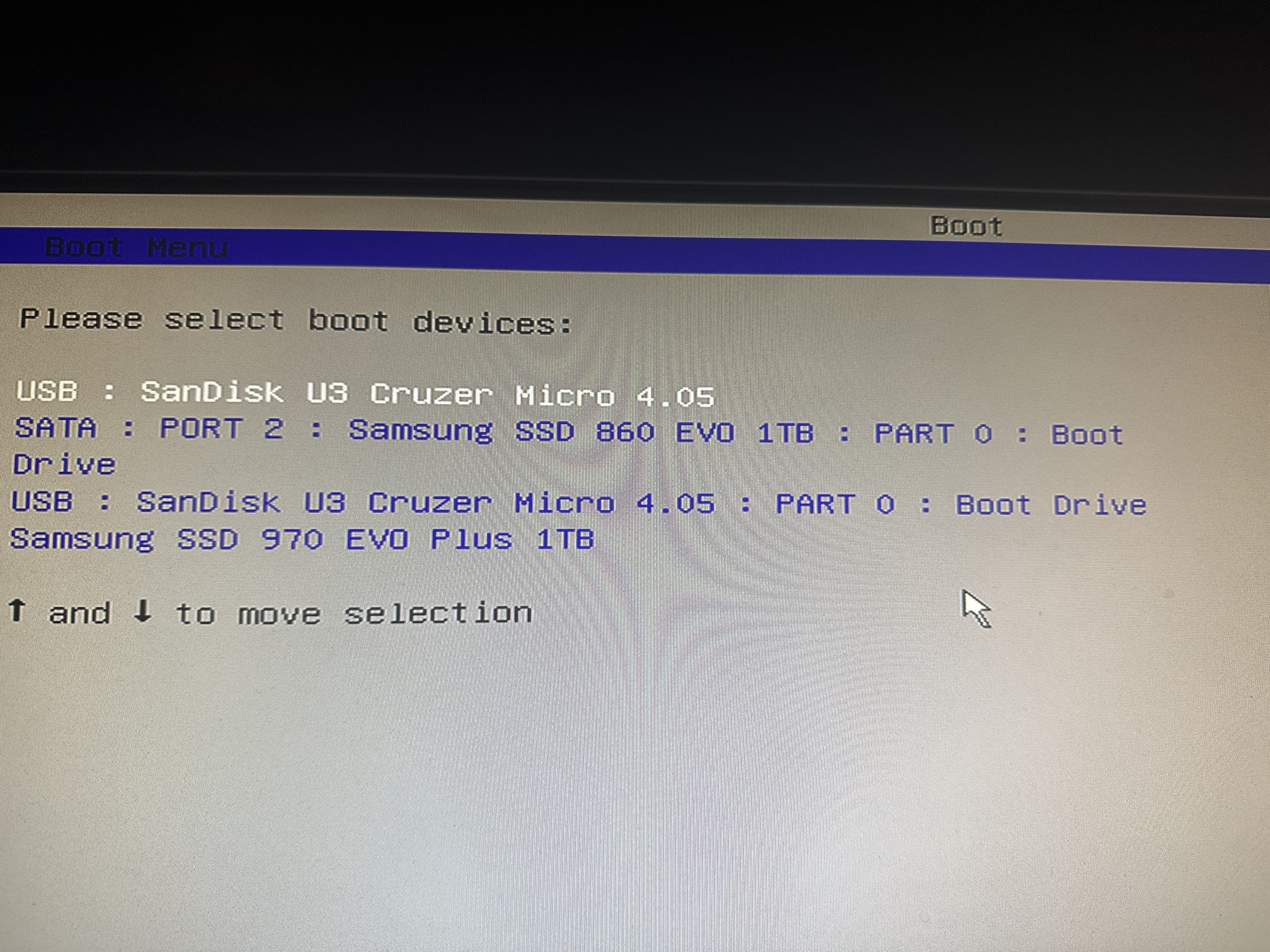 After I updated the bios, I couldn’t see the drives in the boot section any more. I defaulted to the standard settings and created a flash copy of ROCK using etcher to install on the new 970 drive.