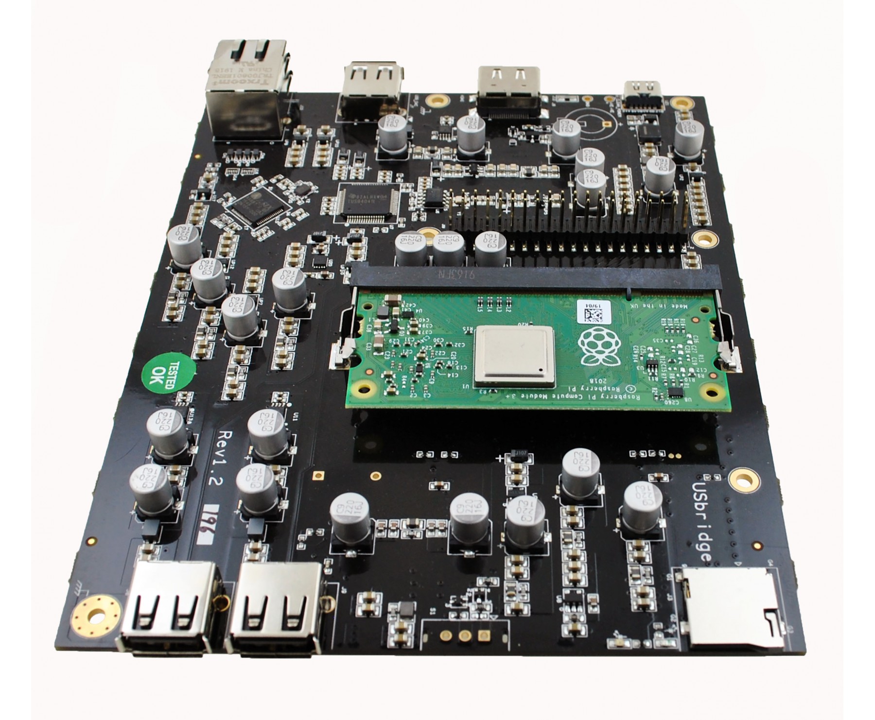 USBridge Sig was build using RPI compute module so from a software point of view, this will give you access to the latest kernels (way ahead of any competitor). The focus of the device is to lower the noise on USB bus. We chose an excellent USB hub IC (TI) and a separated Ethernet to USB Ic (Axis).