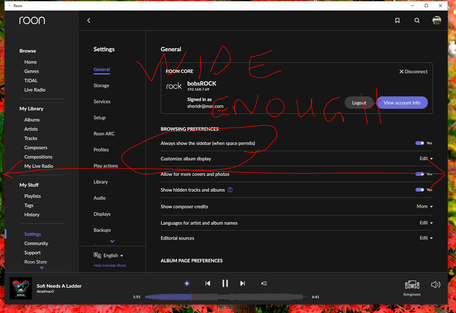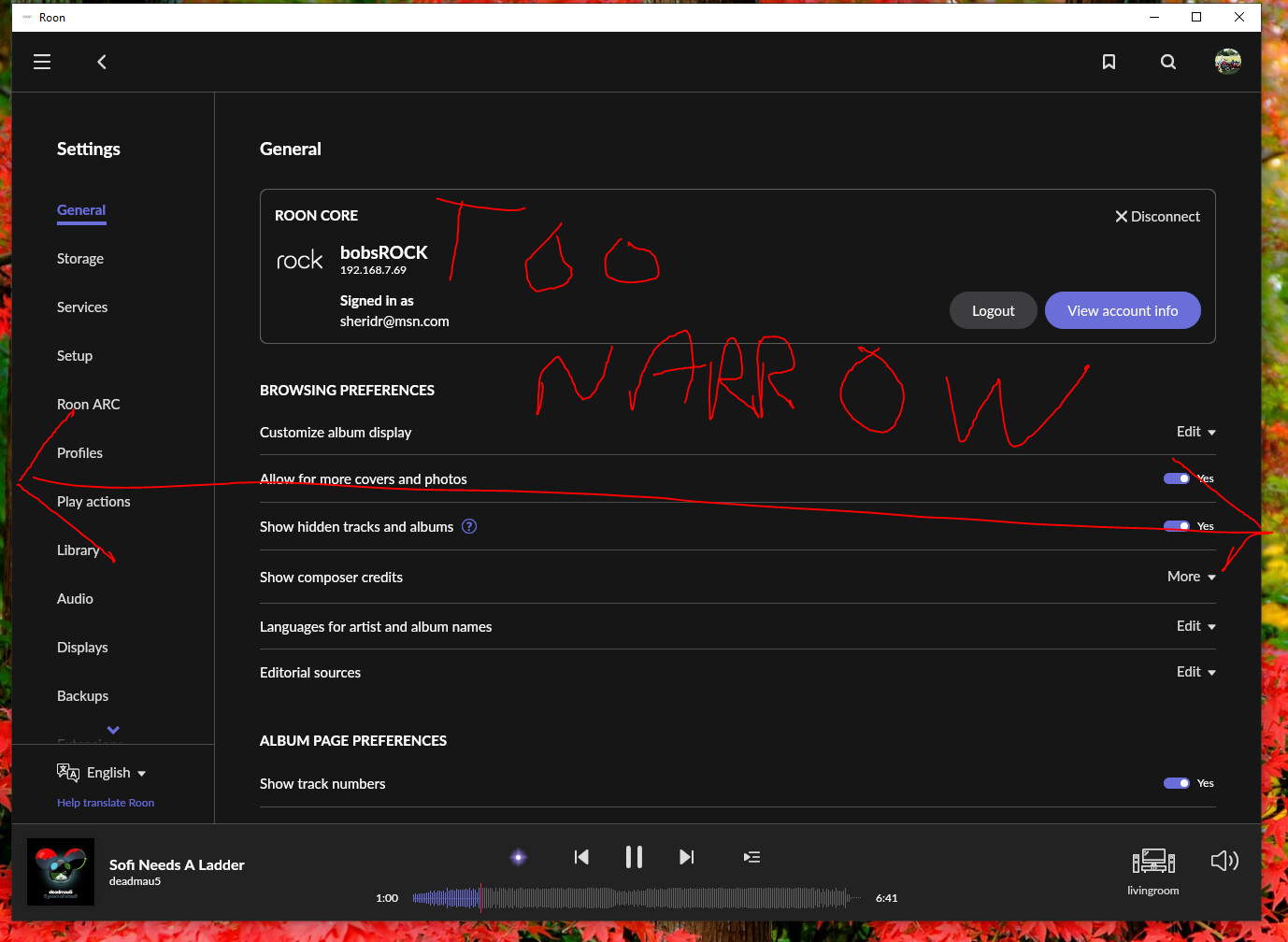 I’ve already rebooted the computer, UNINSTALLED roon (I am a new user so didn’t need to worry about database back up), did a full windows UNINSTALL (both app and settings and database), and downloaded latest install image, installed and that didn’t restore it.