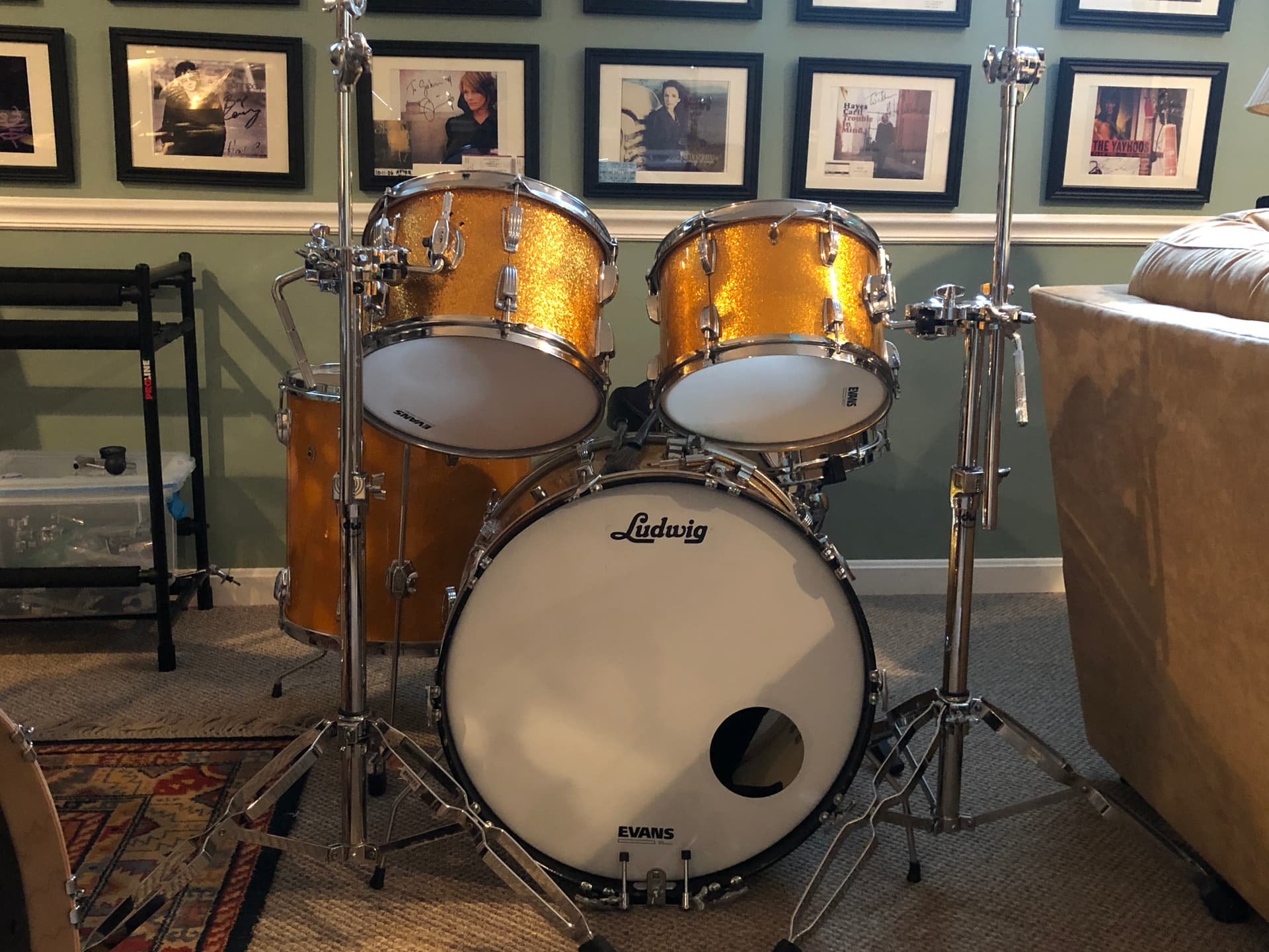 My 1st kit Christmas present 1965 , I was disappointed it was not a black oyster pearl ,so it took me 55 years to get one. I just bought a 72 Rogers Fullerton set. I like yours better.