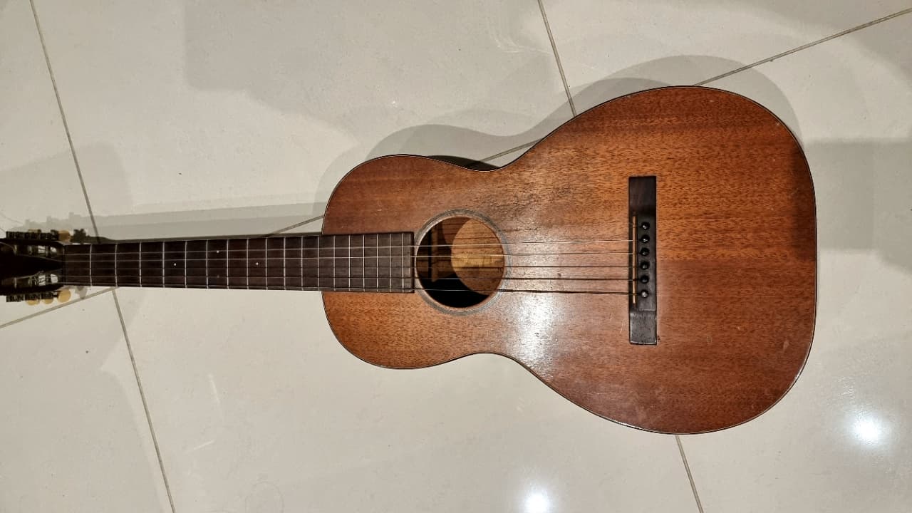 It was easy to date based on the serial # inside the body, almost hidden up toward the neck. Plenty of websites dedicated to Martin acoustics make it clear. It hasn’t returned with me, I sent it in to a luthier in Melbourne to give it a complete once over before bringing it back home where the likelihood of finding an experienced luthier in vintage/antique acoustics likely doesn’t exist.