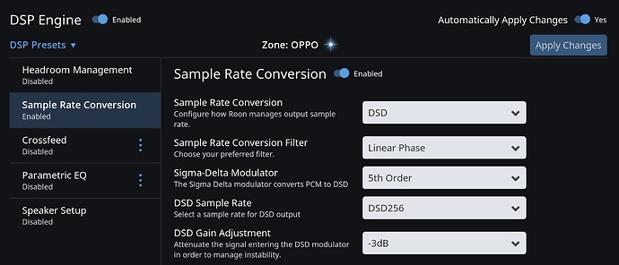 This morning I manually configured to ONLY upsample 44.1 material to 176.4, minimum phase filter (which I also preferred). Also, enabled volume leveling…which I love, love, love!! This sounded really good. Again, need to test a bit more, but my preliminary tests reveal only 16/44.1 benefit from upsampling…at least in my system.