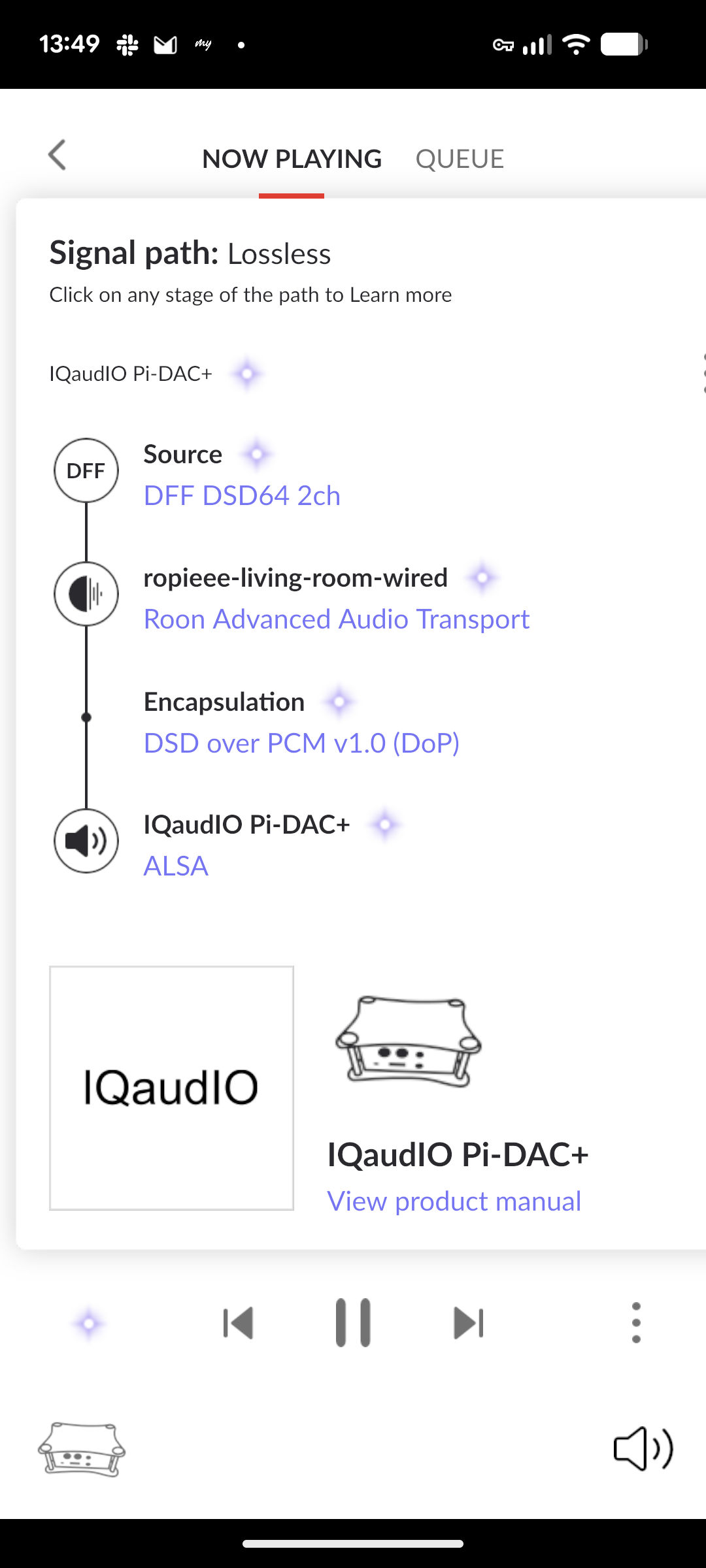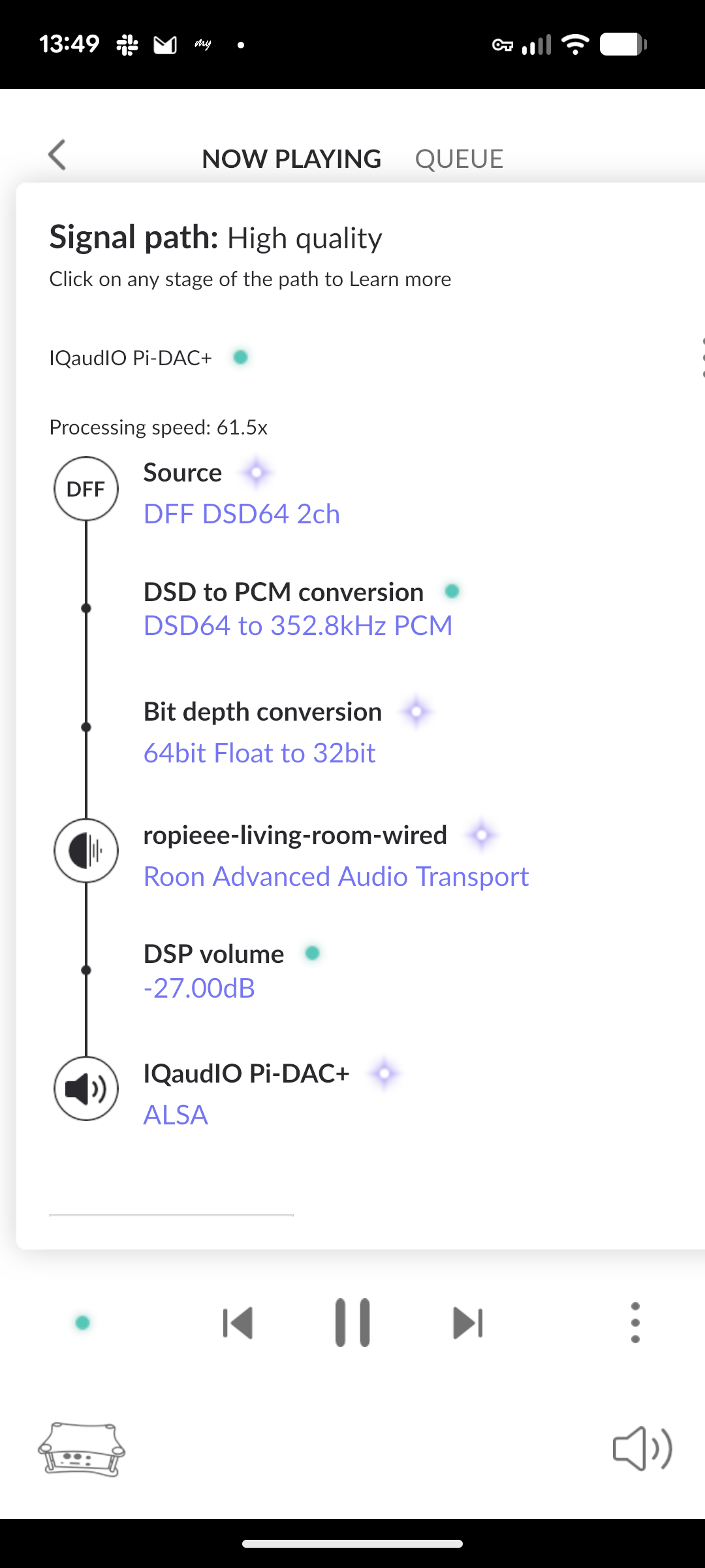 When using a Raspberry Pi running Ropieee via a DAC hat, I see this in the signal path.