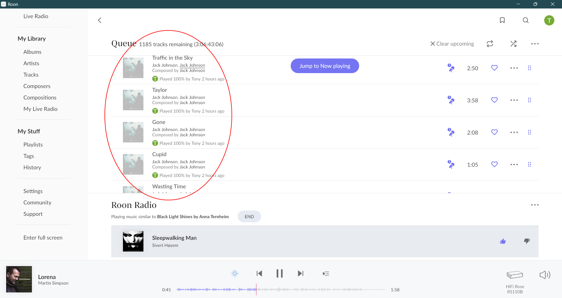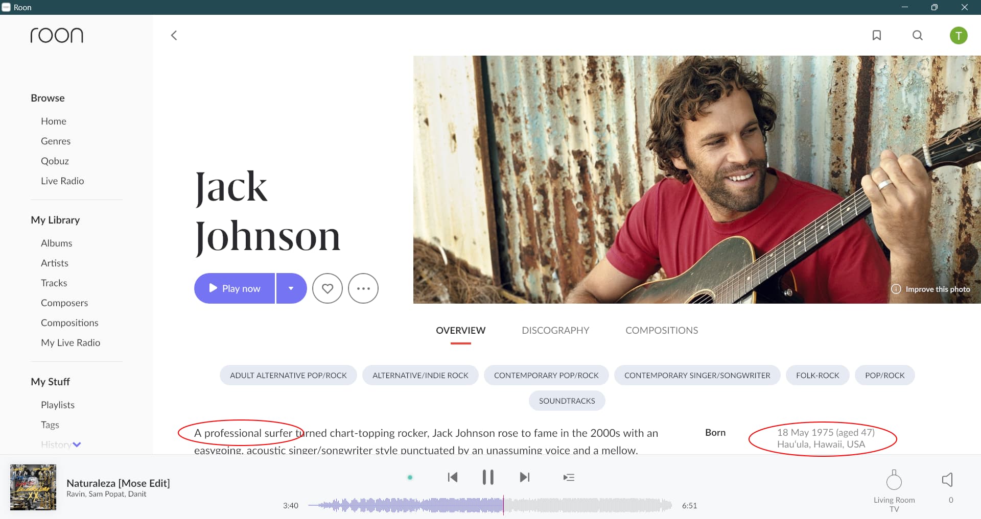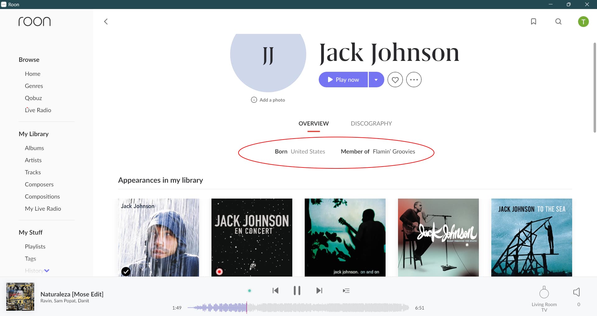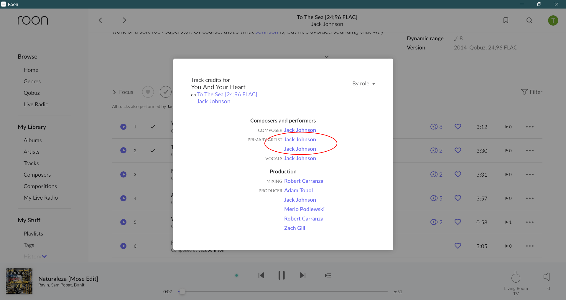 All Jack Johnson albums are affected. I have 8 of them. I have tried removing the duplicate Jack Johnson from one of the albums but there are +/- 15 tracks per album. This has to be done on a track by track basis. I cannot see anyway of doing this by batch.