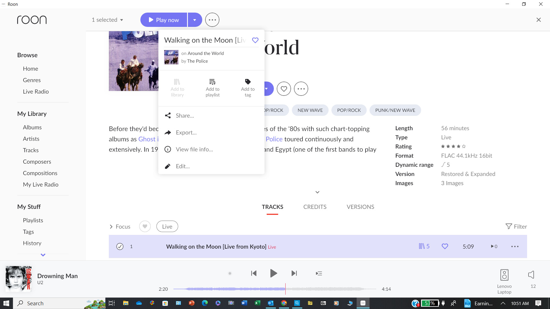 Why is the "Edit " tracks choice available only on select albums/box sets/etc? All albums are official releases that I have ripped into a HDD (local drive). On some albums, I right click on a track title, click 3 dots on top, choices are 1. Share, 2. Export, 3. View File info, 4. View Lyrics. That’s it. On some others album titles, I also see 5. Edit. WHY???
