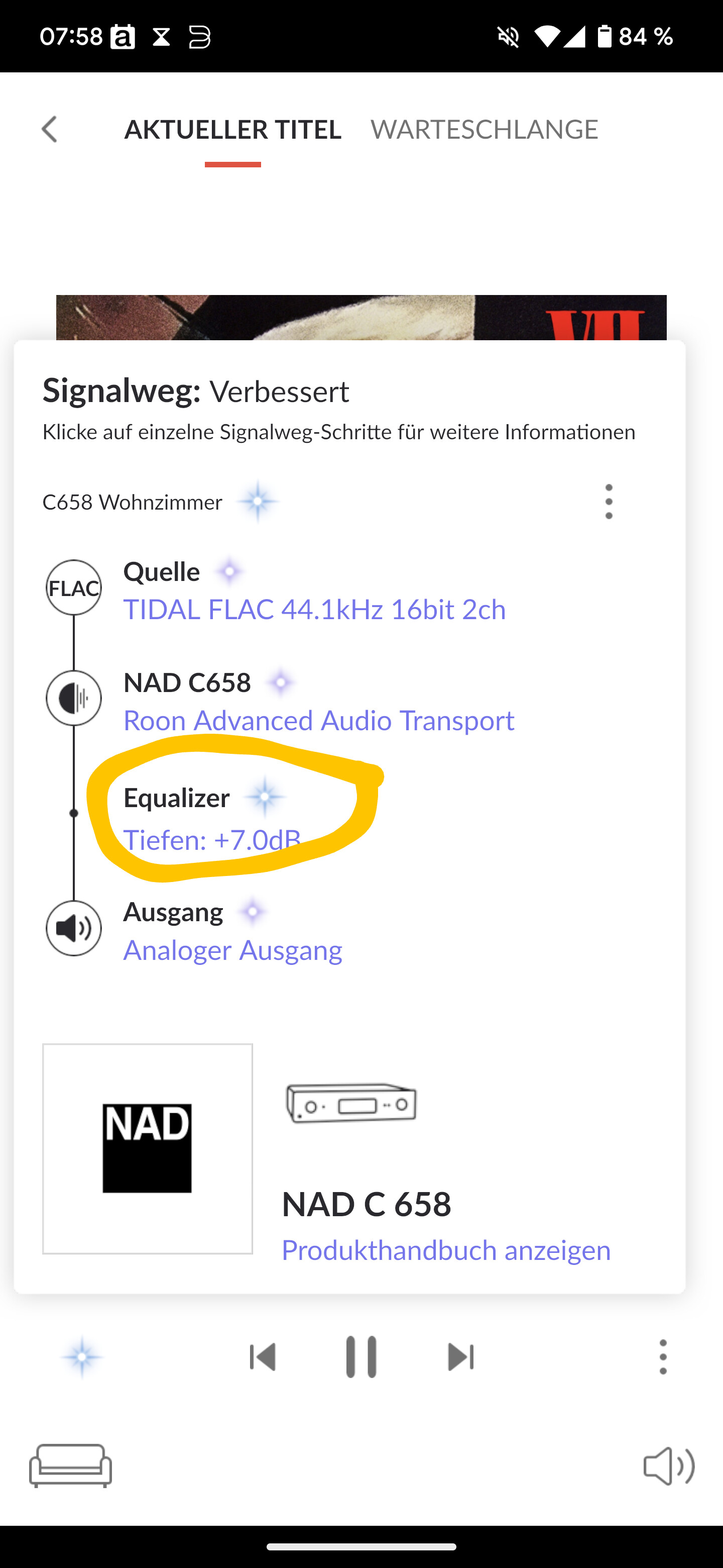 I have a question regarding the signal path. In my case it shows an active Equalizer. I can’t remember that I have set it. And it seems I can’t remove it. When I go to the DSP settings all EQs are inactive.