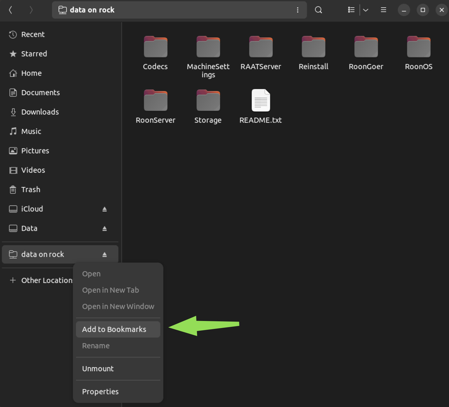Hi Suedkiez, Thank you very much for taking the time to walk me through this. I managed to access the Nucleus by navigating to smb://xxx.xxx.x.x, where I got the IP address for the Nucleus from my router web pages. I was given the option to log in as Anonymous, which let me access the RoonServer folder.