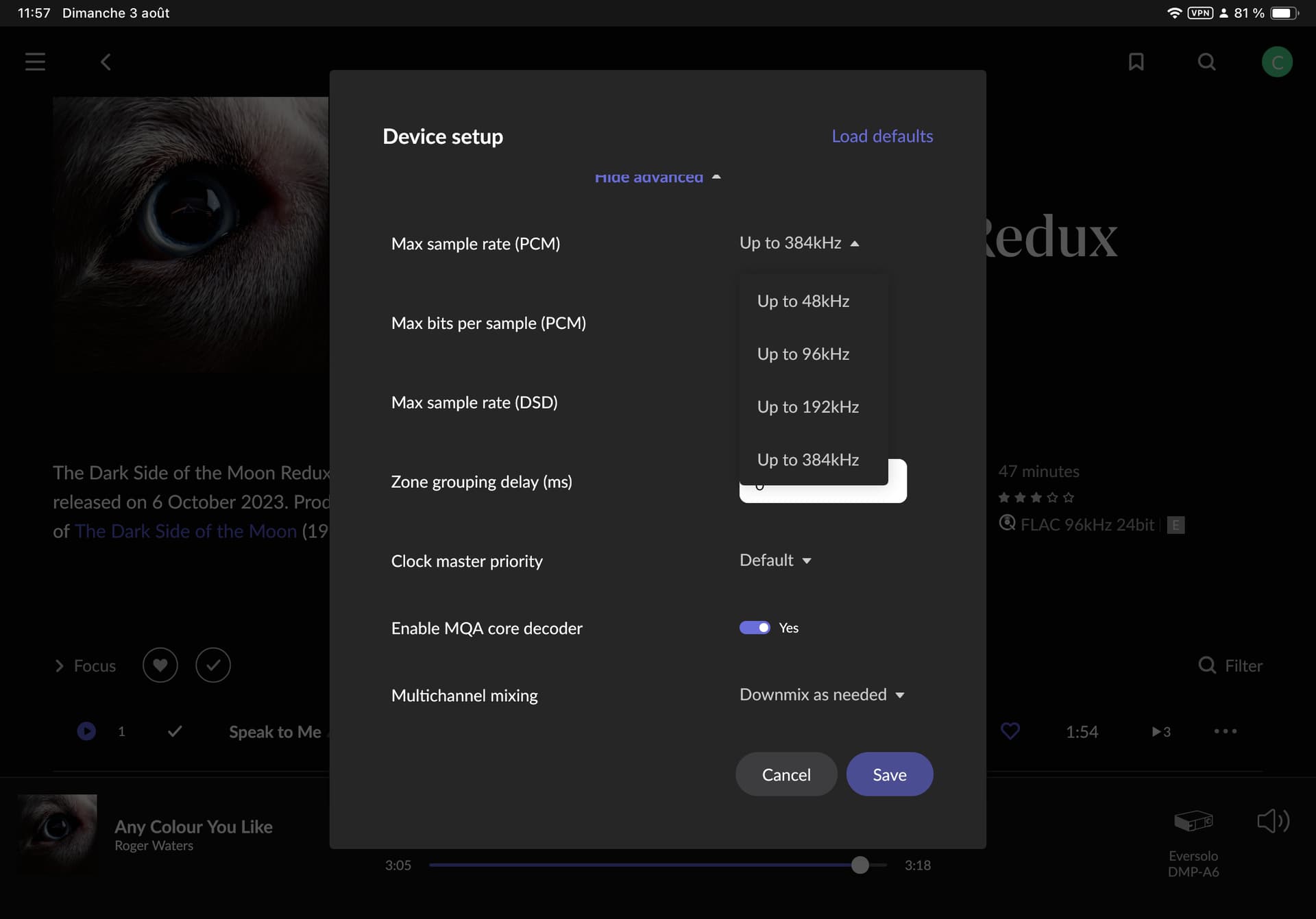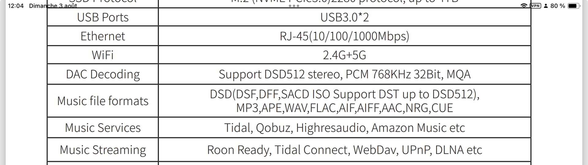 Max sample rate PCM is 768kHz but ROON recognize only 384kHz. I think it’s the value of the previous génération.