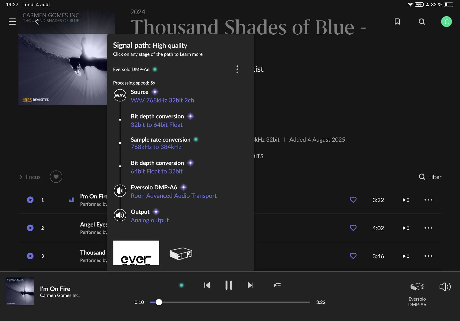 I really like Roon and it’s just to test the capabilities of my new player. Because honestly, the amount of titles available in this format is so small that that’s not what’s going to stop me from enjoying the music I’m listening to.