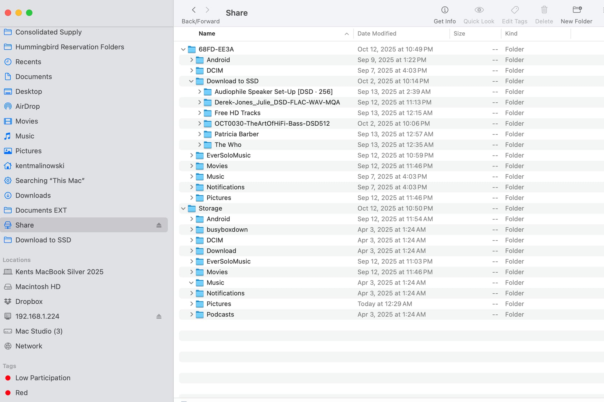 Can you please confirm what kind of tracks you added to the Eversolo? Are they regular FLAC/MP3 tracks? It does look like Roon is connected to that share, so it is strange that nothing is being found. If you connect to the eversolo via your Mac, the tracks are all listed under the Share folder?