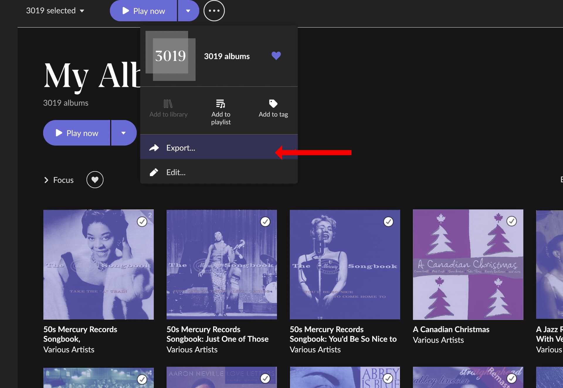 Utilisez la fonction Exporter dans le navigateur Album - qui vous donne le titre de l’album et l’artiste de l’album…