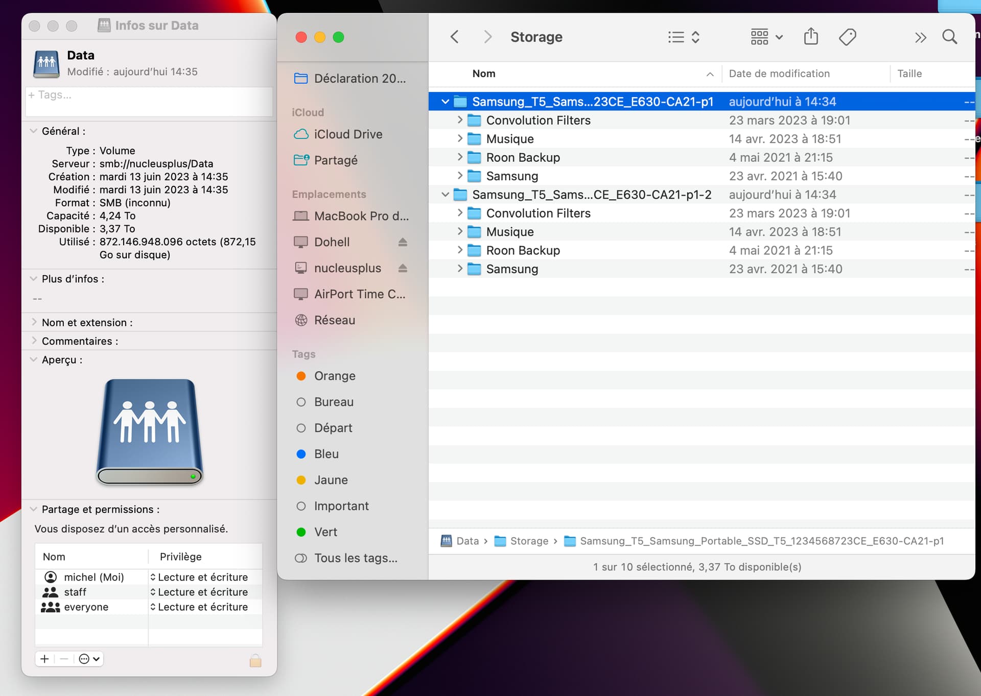When connected to my Nucleus and checking the SSD through network on my Mac, it shows me everything double, total capacity, occupied and free space, all the folders are double as well with exactly the same time stamp.