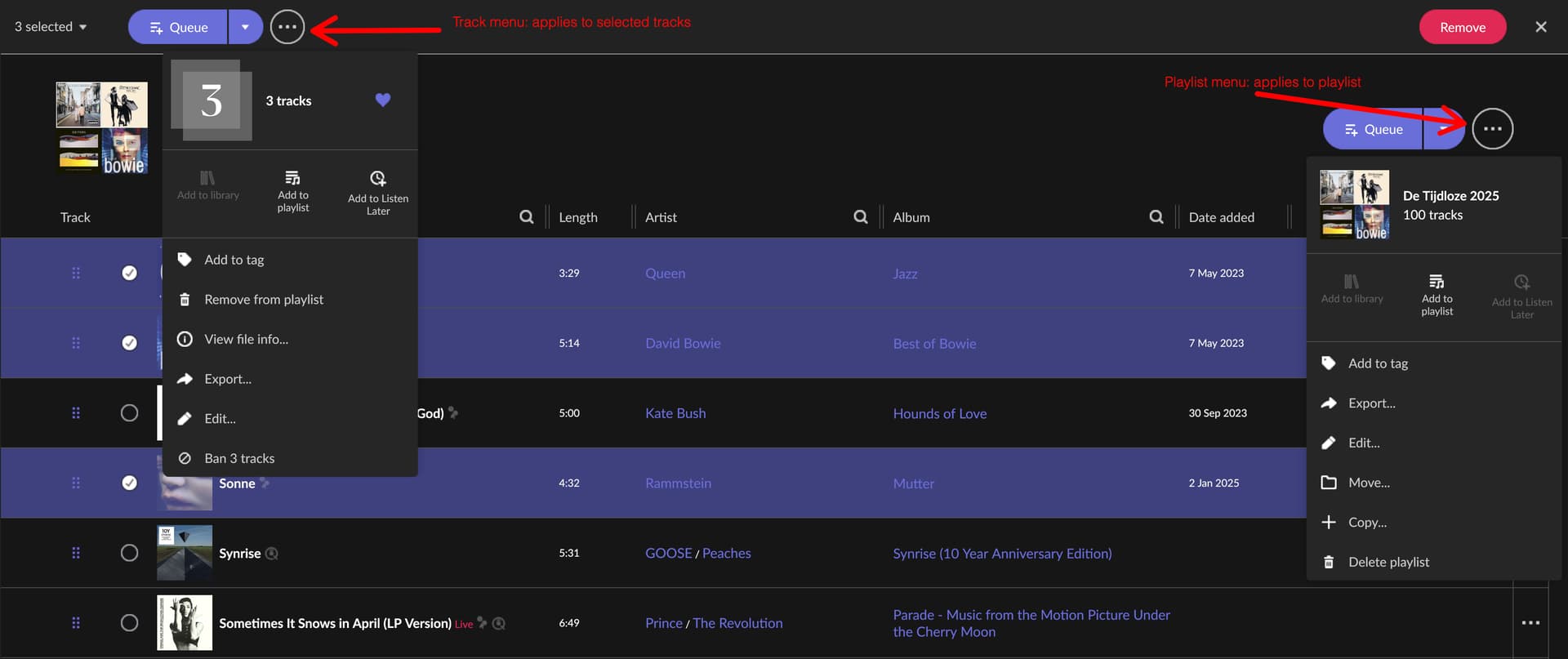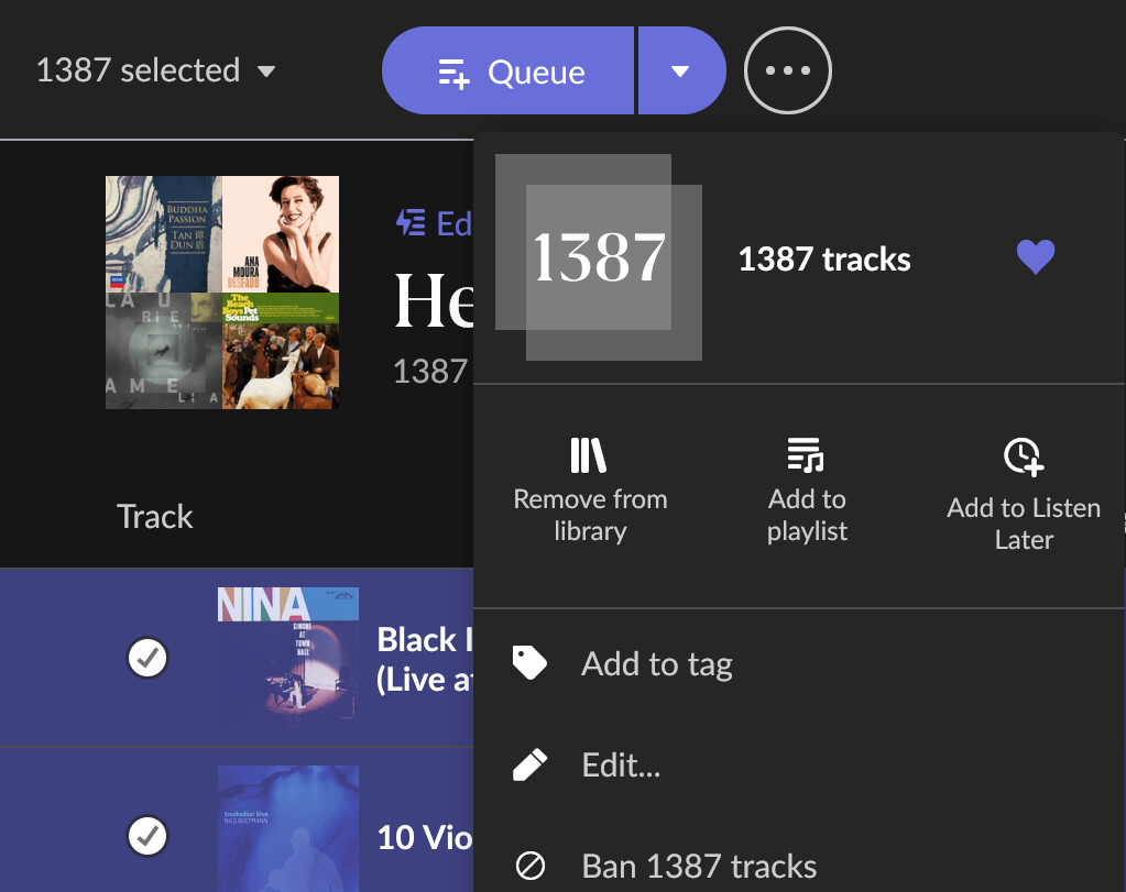 • Or a bulk action that converts a playlist into track-level tags