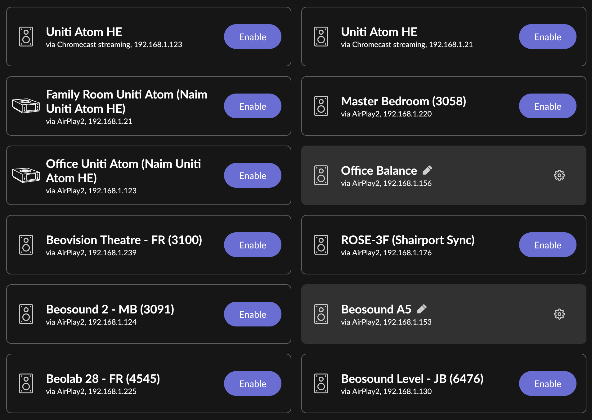 I am able to play to all of them via ARC + “real” AirPlay, but not via the server (Roon Nucleus, wired). I’ve checked both wired and wireless devices, and none work.