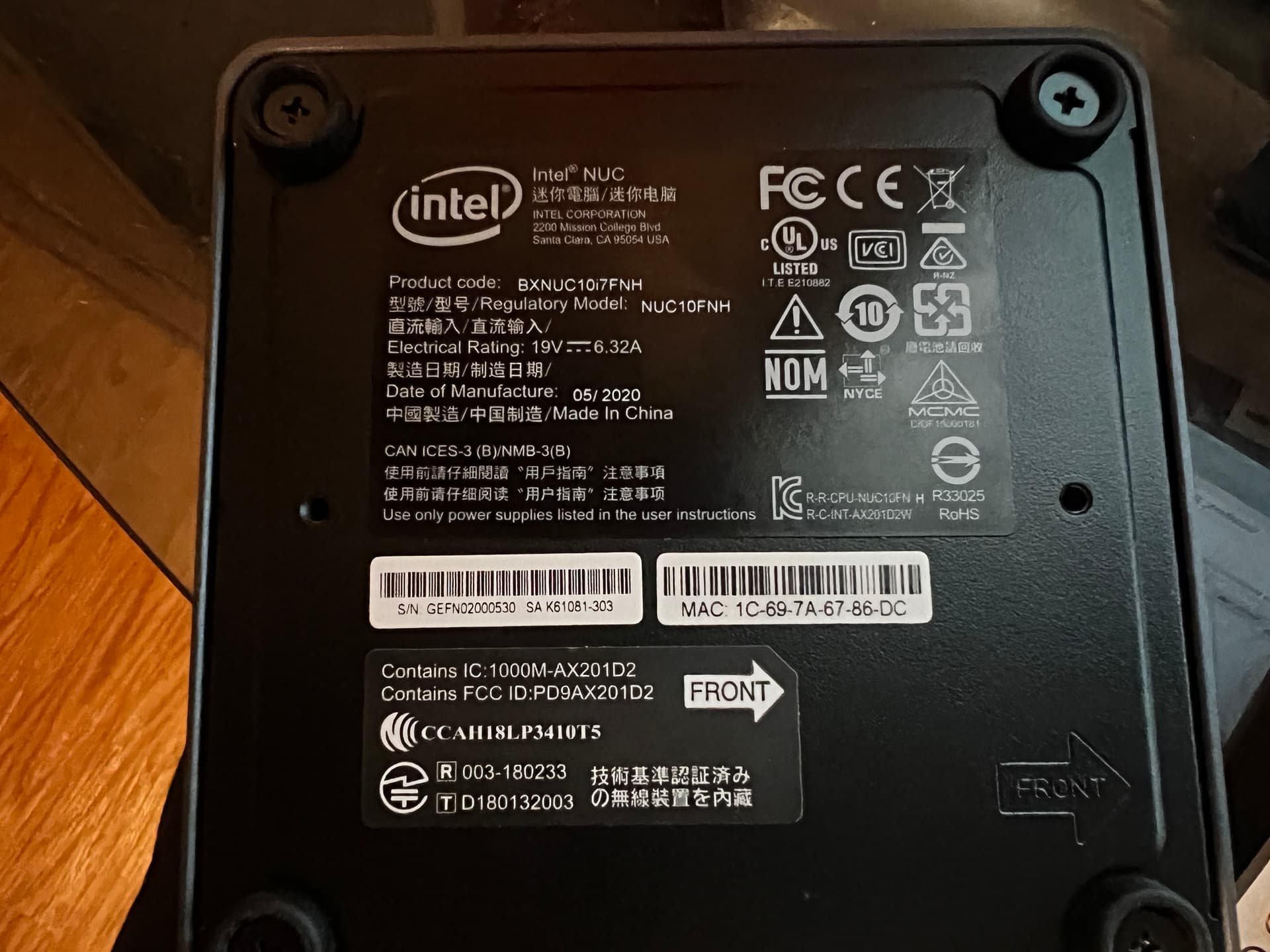 This is a BXNUC10i7FNH with ROCK already installed.
