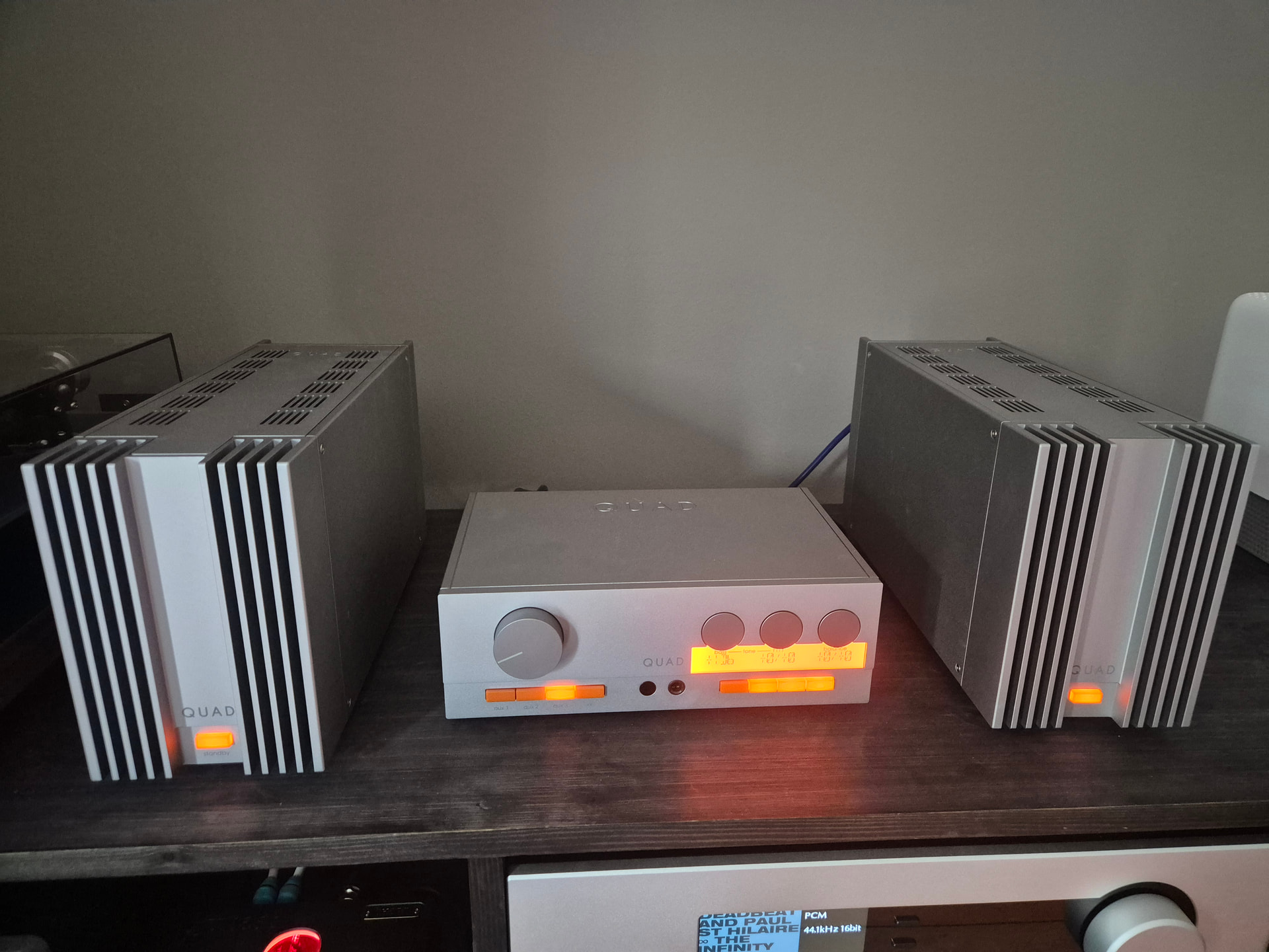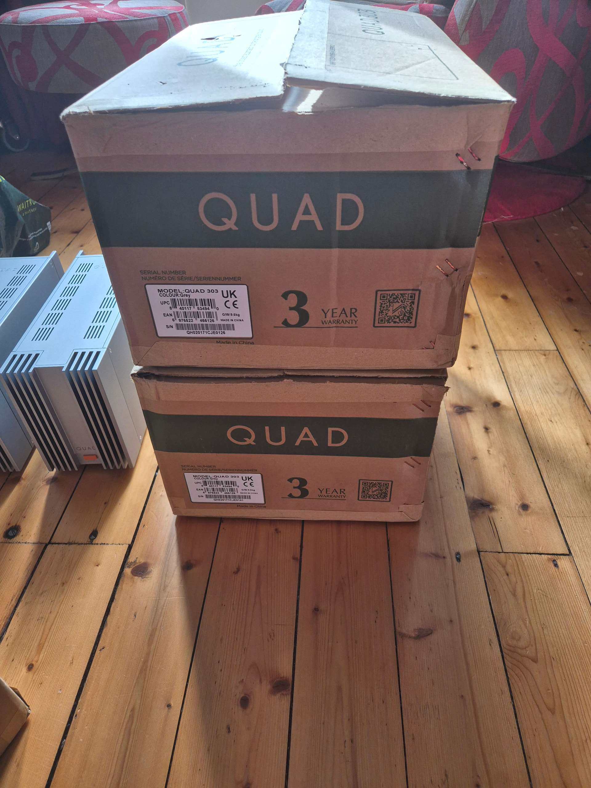 I have two Quad 303 power amps for sale, they were both bought at the tail end of 2024 so have just under 2 years left of Quad warranty. Both items are near mint quality with no marks or dents. Come fully boxed. Am selling individually although they can be bought as a pair if required. In the pics I have also added an image for reference of what the amps look like alongside the matching 33 pre amp, that amp is not for sale. RRP for these amps new is £1199 so £2398 for pair