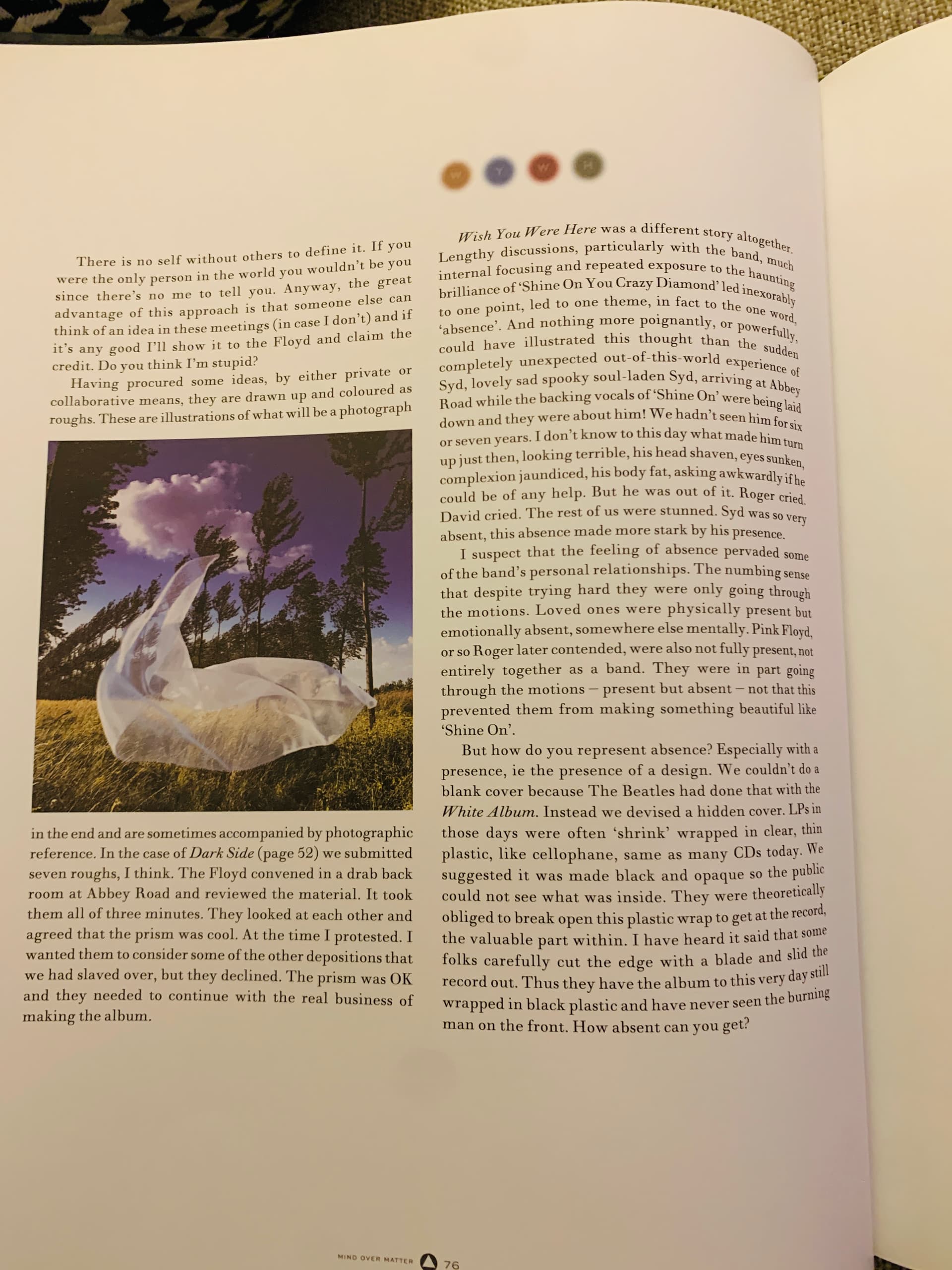 The notion to offer fans multiple images in the package was to “add to the joy” of it, said Powell. That’s also why they got the impish idea to shield the cover in black plastic, a move that was also meant to underscore the theme of absence. At the same time, the packaging was “supposed to be like a Christmas present where you don’t know what’s inside”, Powell said. “Of course, the record company hated it because we were covering up all these expensive images. But the band had total creative control, so they had to back off.”