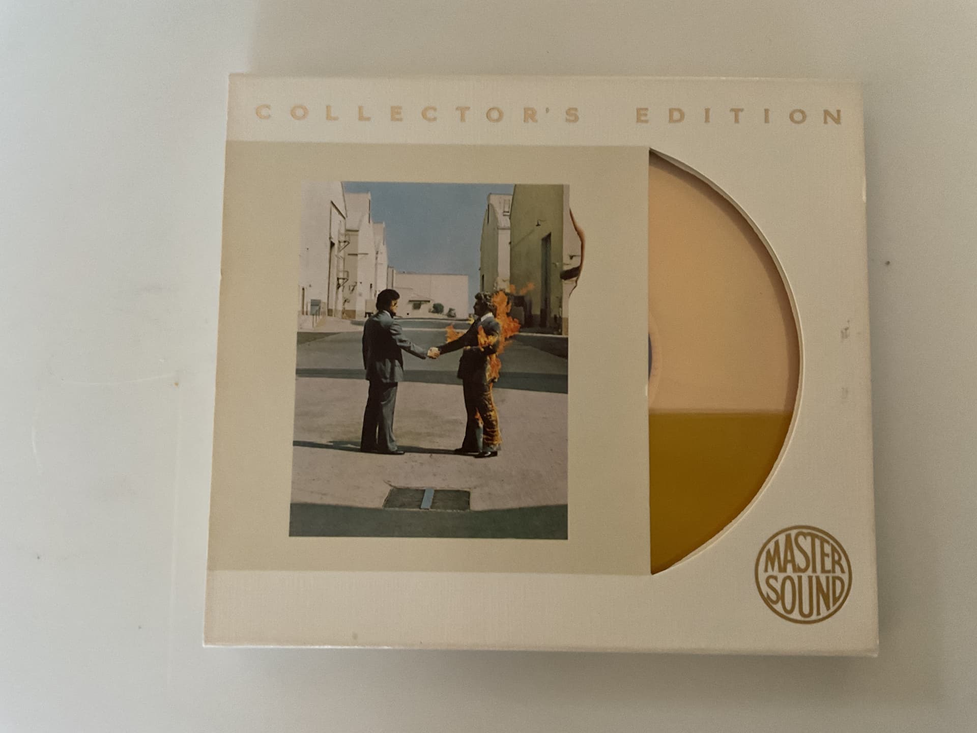 I bought the LP the day of release, and the cover I am describing is the two men shaking hands with one’s back on fire.