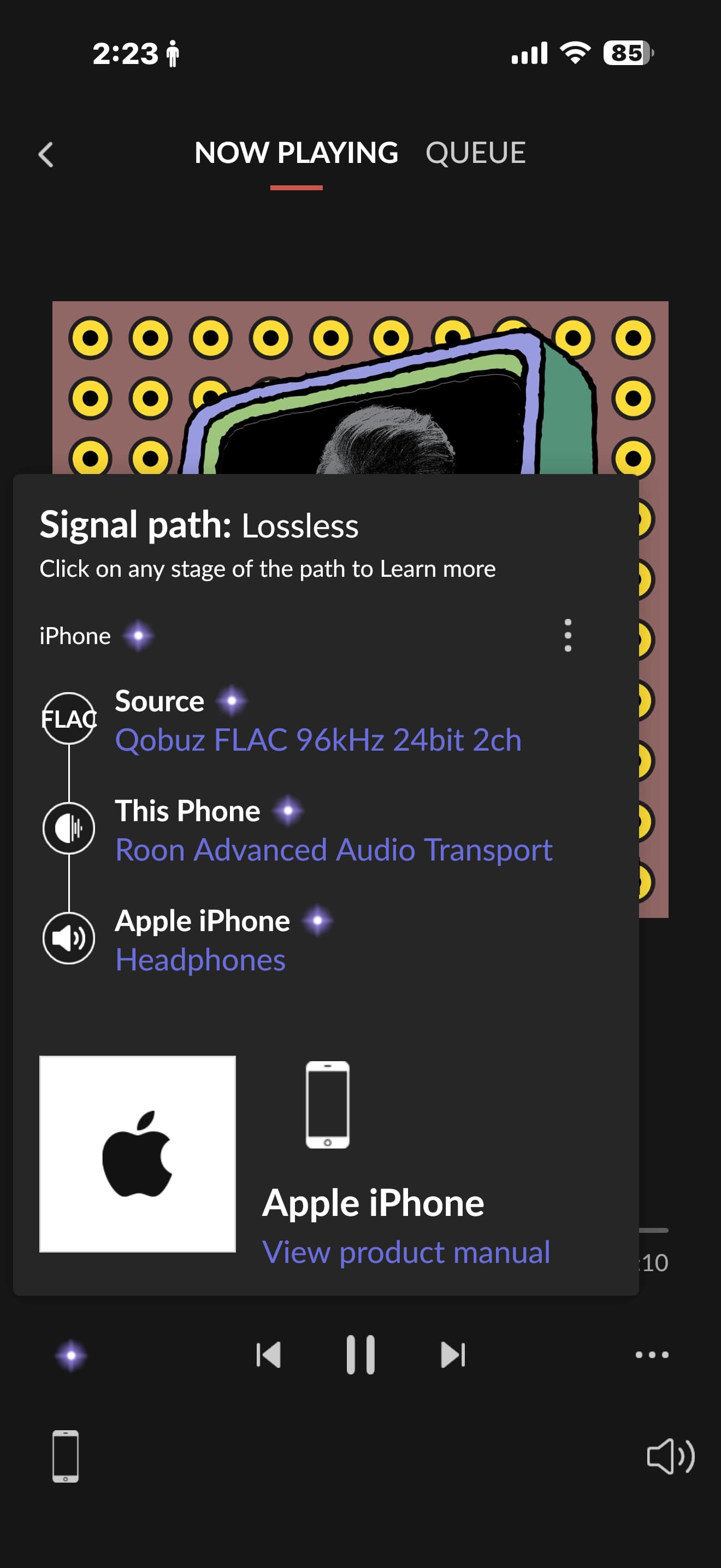 As I stated above, there are two ways to connect the headphones via Bluetooth. The first one is to just connect the headphones directly to one’s device. If you are using a device that has Qualcomm aptX built-in then the HDB630s will make use of this codex. However, if you are using an Apple device then you will be limited to the Bluetooth SBC codex since Apple only collects licensing fees and NEVER pays them. This is where the little and quite nifty BTD700 dongle comes in. although it can be somewhat finicky to set up, once you get the hang of it the BTD700 dongle makes for a rewarding listening experience. Once the BTD700 dongle is connected to one’s Apple device it enables the HDB630s to connect the device using the aptX Bluetooth codec. A nice little trick. Here are a few screenshots to help explain things a little more clearly. All these screen shots were taken on my iPhone 16 Pro Max while using the BTD700 dongle and streaming via Roon (not Roon ARC, however things work the same when using Roon ARC (or PlexAmp).