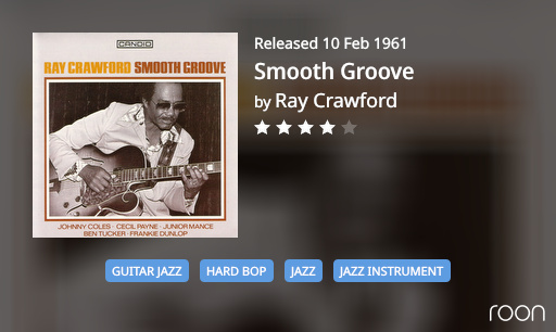 Thanks so much for the terrific additions. I have ordered Roy, Tito, & Bill. Good thing for Tidal/Qobuz or I would be filing bankruptcy. Ray Crawford was new to me (thanks to Marc Myers JazzWax post yesterday). I was not familiar with Ahmad Jamal pre-Pershing circa 1955, the two albums Crawford played on sound quite lively to me. This early effort is quite engaging. Please keep the gems coming!