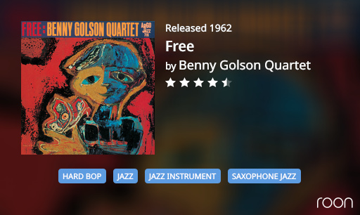 I like the Discover tab in Roon as it can throw up a hidden gem, as is the case with this Benny Golson album titled âFreeâ. While the title might misled those who like their jazz at the freer end of the spectrum, I think all jazz lovers would enjoy this album. Its available on Tidal (includes a number of tracks from another album). Also, for those who have not yet taken up @ RHGâs suggestion, do yourself a favor and give âJazz Sabbathâ a spin.