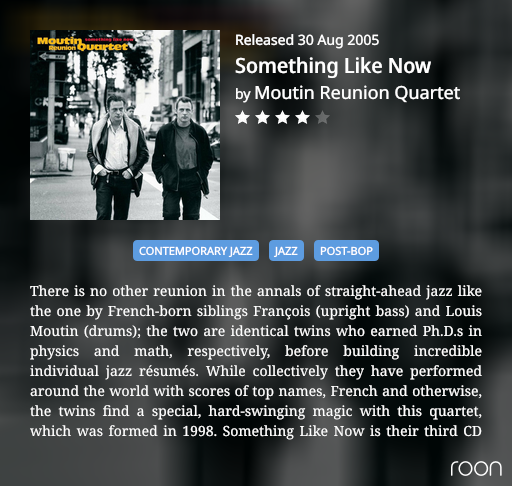 I donât believe that the very talented Moutin twins have been mentioned as yet. This recording is one of their best and itâs available on Tidal. Highly recommended and it sounds great!