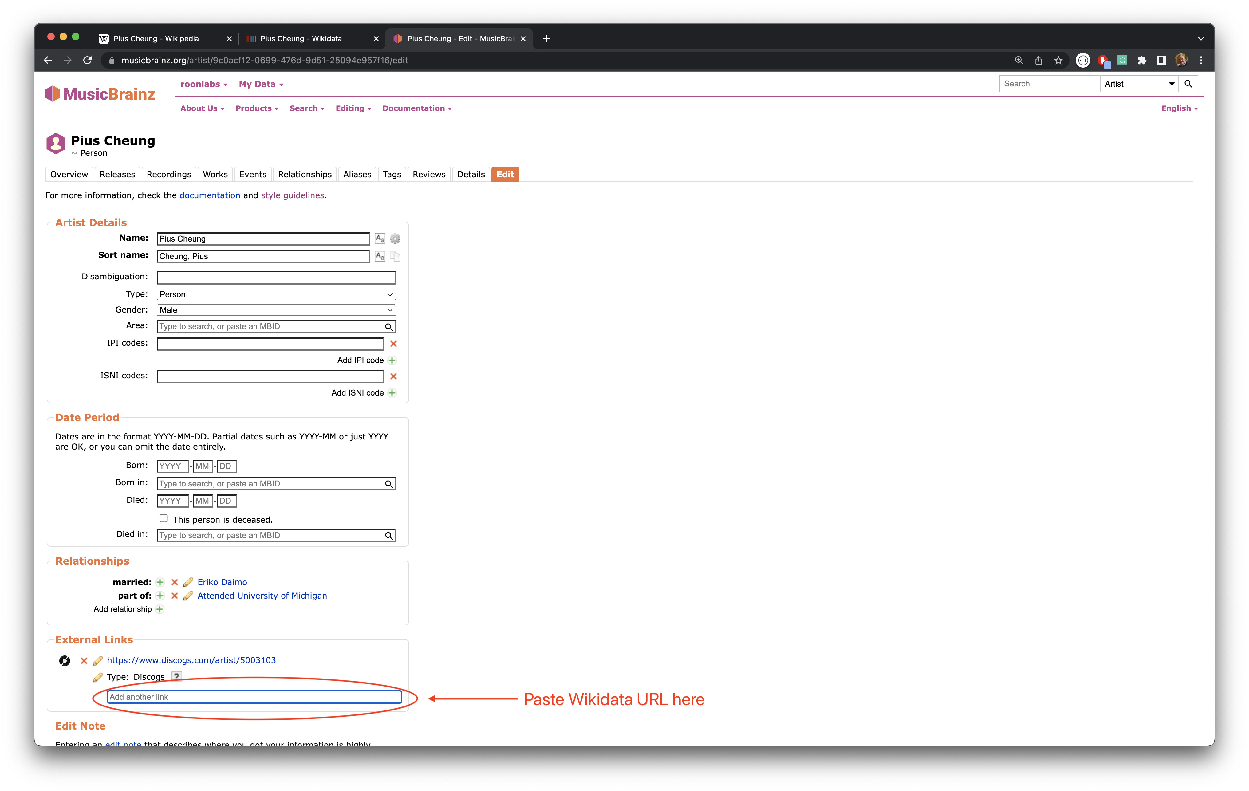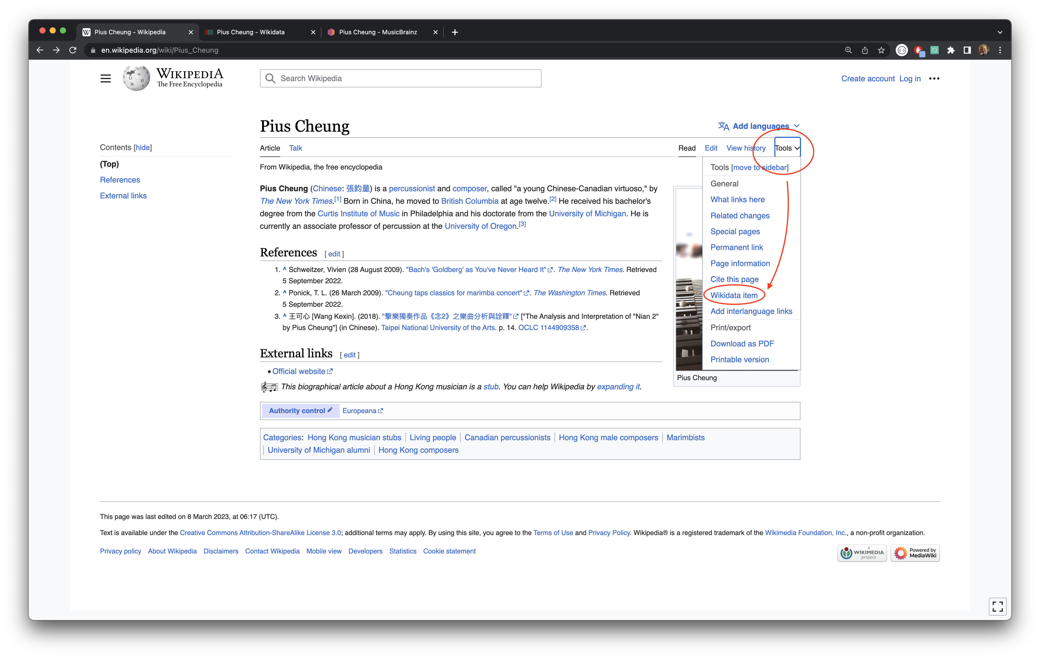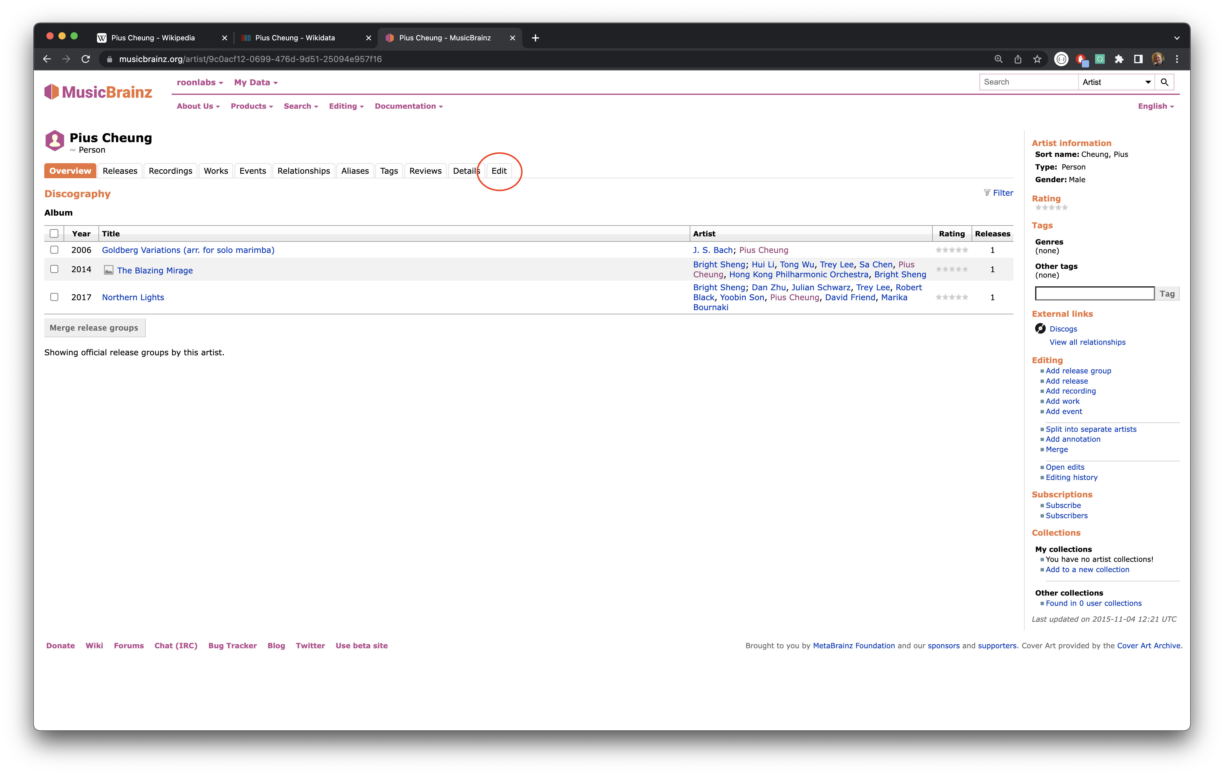 An example: I just found out about amazing marimba player Pius Cheung (from an Ethicist article in The NY Times by Kwame Anthony Appiah about Fiddler on the Roof of all things, definitely worth reading). He has a brief Wikipedia page (Pius Cheung - Wikipedia) but there’s no artist info on Roon. How does this link get made initially, and is there a way that I can contribute / fix as I can with Valence and artist / album photos? Is this in Musicbrainz or something like that where I can add a link and it’ll eventually get taken care of?