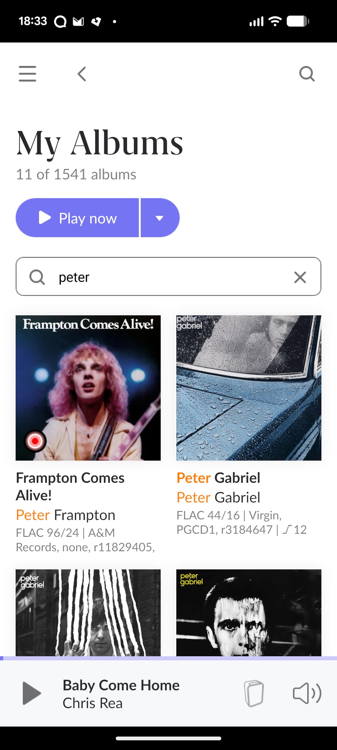 There is no option to display Qobuz favorites or Roon library albums as a list (whether on Android, iOS, Mac or Windows).