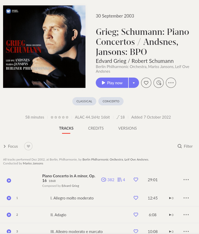 Now it’s true that in the artist tag there should be the “artist”, so it’s easy to identify which recording it is, but I assure you ROON has no issues recognizing classical music albums when the composer is in the album artist tag