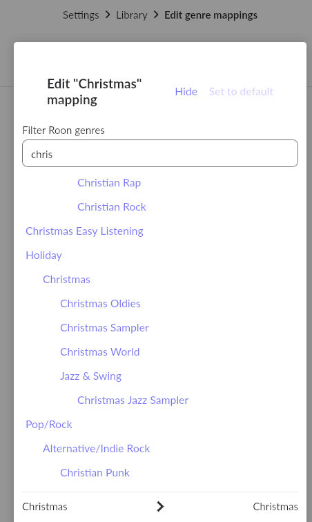 I have no Christmas albums in my Roon library. When my wife wants to listen to some, I do a search for whoever she wants to hear and search their discography for a Christmas album.
