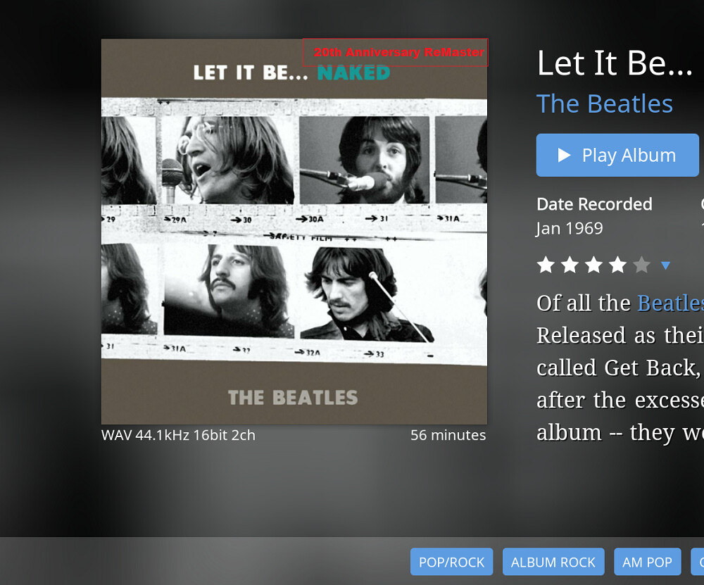 Where the whole thing falls down now that the overlay has been removed is if you tag albums, for example I have a tag called ‘Rock’, the only metadata you see is title and artist, meaning you are unable to differentiate between different versions of the same album: