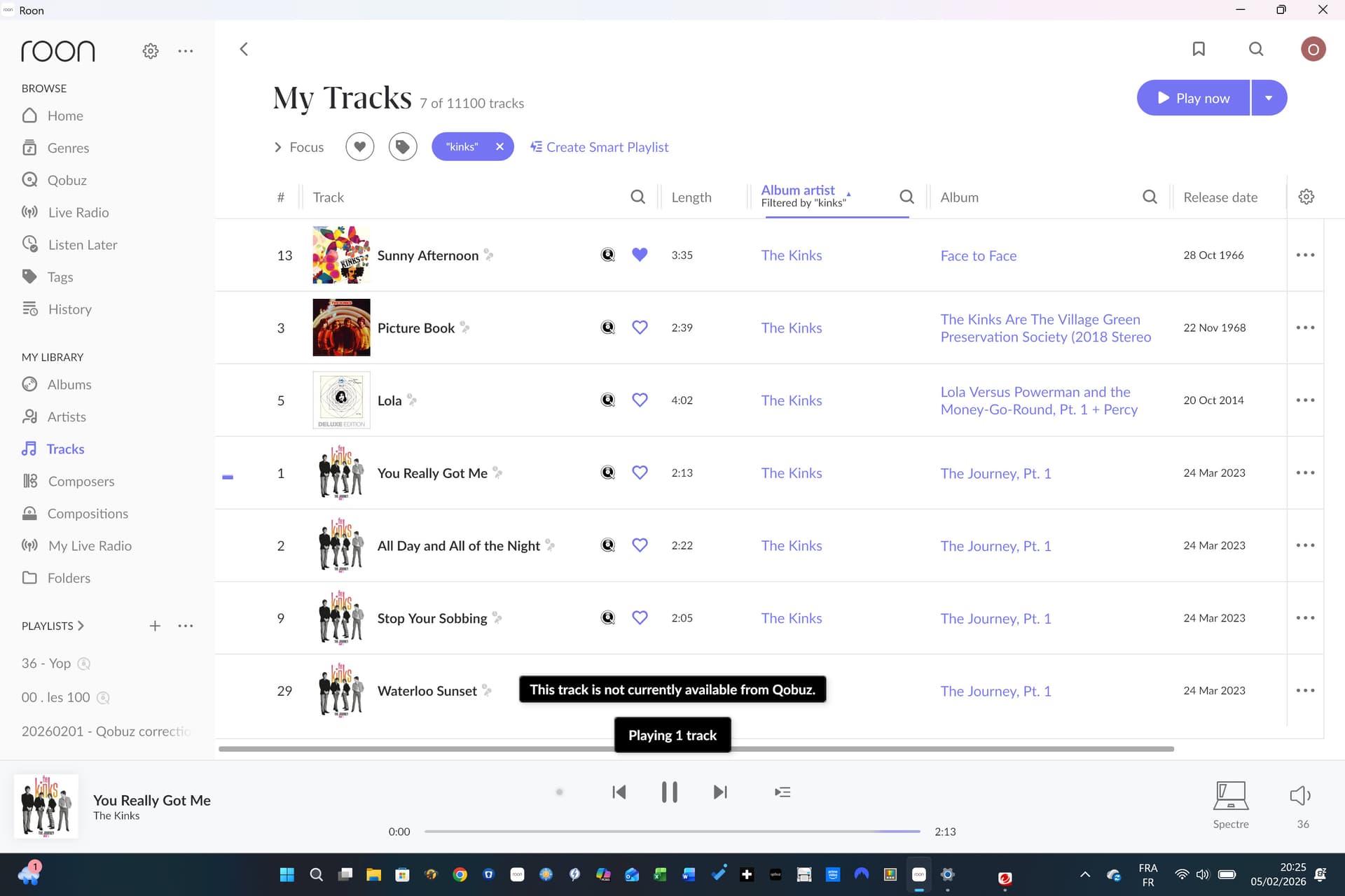 There’s an ‘unavailable’ tag in focus, but unfortunately it’s not working… Right now, I do have ‘‘the kinks - you really got me’’ (from the journey part 1) not available in Qobuz, not mentioned in Roon