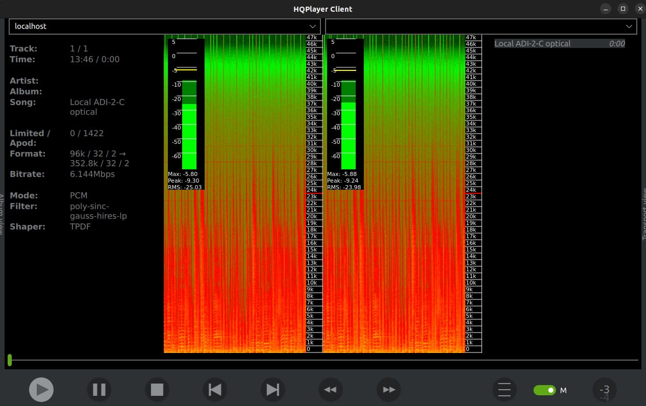 Now we have Client app and HQPDControl showing us some cool real-time analysis.