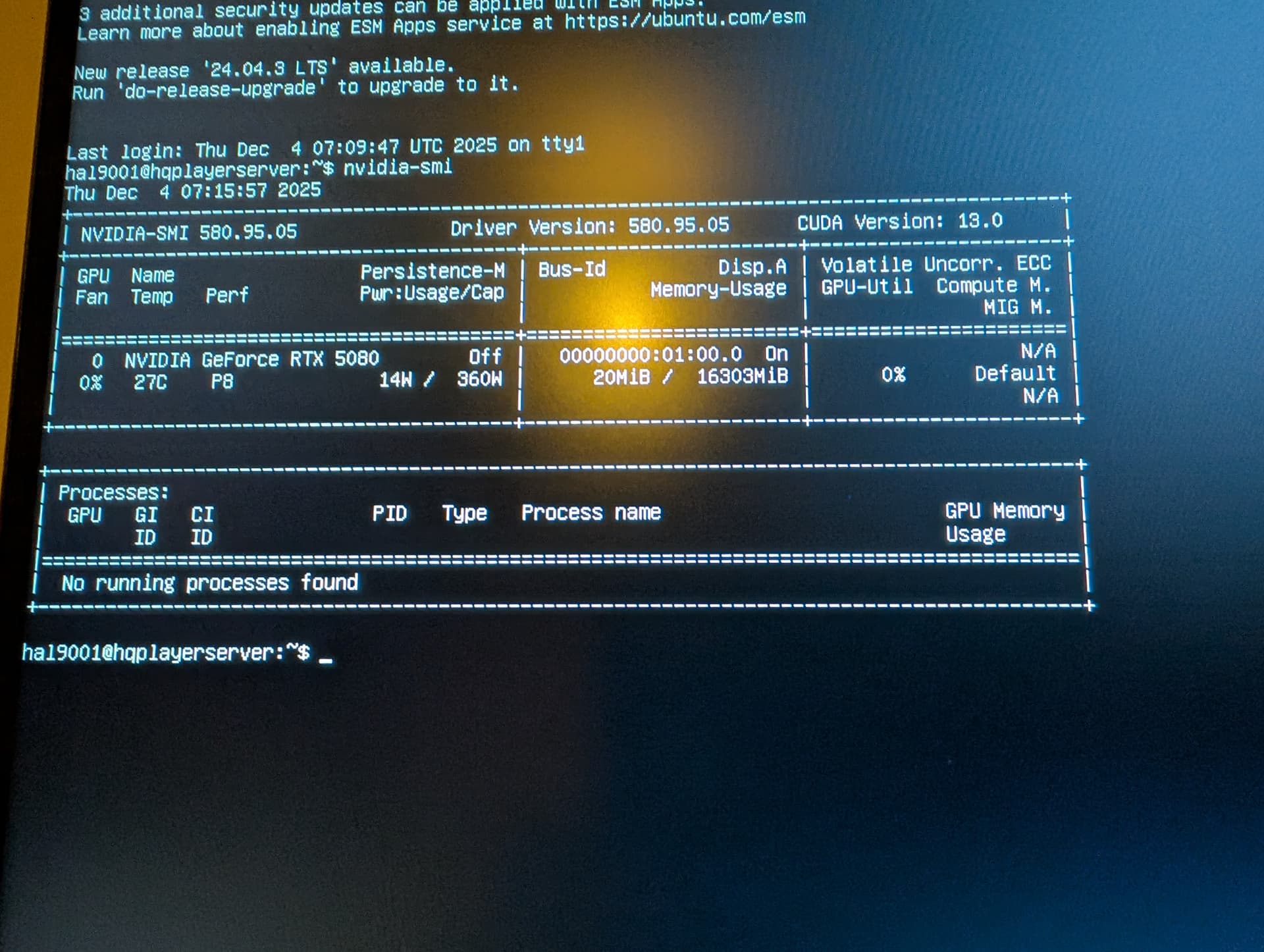 Can I also add that when I type in hqplayerd it returns CUDA devices: 1 and CUDA Device 0: NVIDIA Geforce RTX 5080. So it seems to correctly recognise the card.