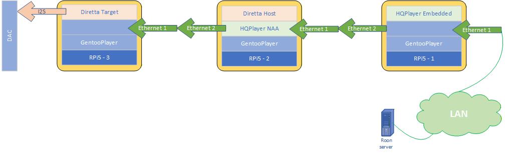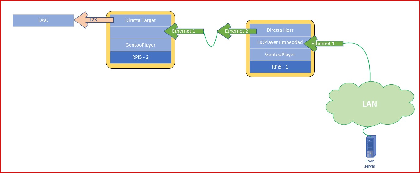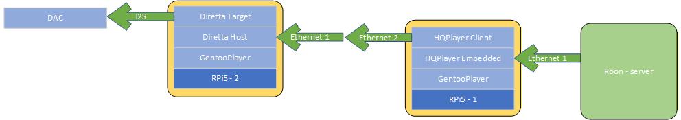 @J_de_Hond - your diagram looks pretty close! You just need to move “Diretta Host” from “RPi5 - 2” to “RPi5 - 1” to produce the correct architecture.