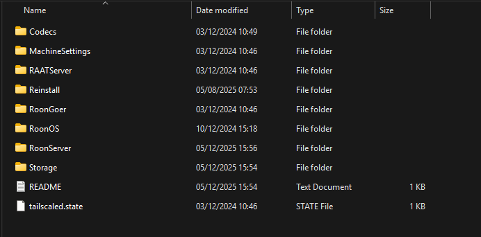 The library database is held on the m.2 SSD of the Nucleus One, along with the RoonOS and the Roon Server software. You can view the folders in File Explorer under \\nucleusone\Data.