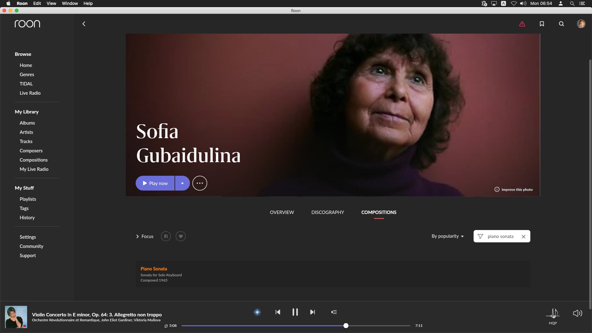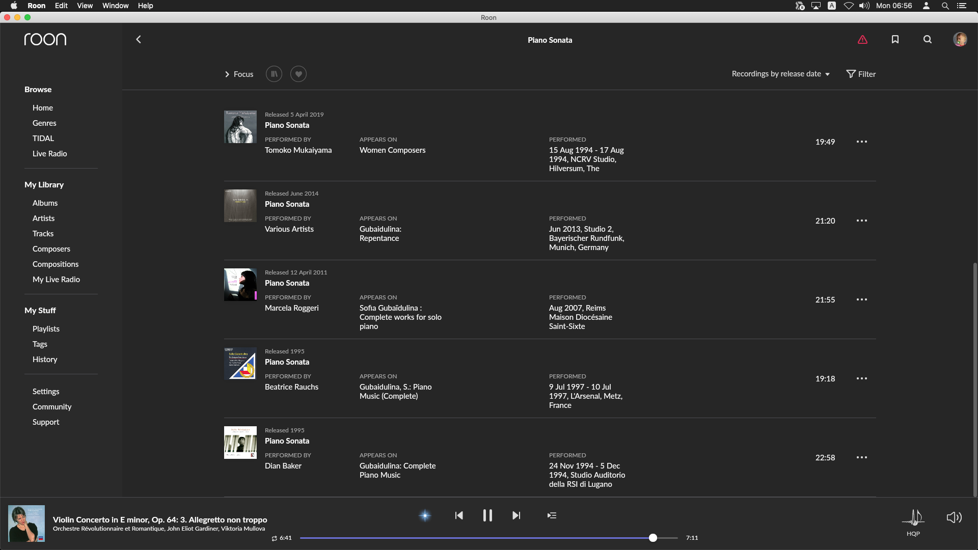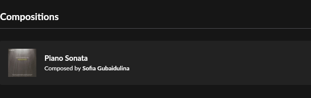 I wanted to find Sofia Gubaidulina’s Piano sonata. It is not in my local libaries, but should be in the Tidal catalog.
