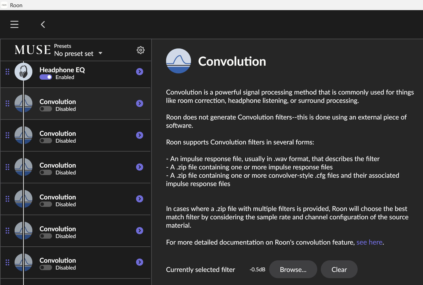 I have quite a few convolution files that mimic the Tilt-filter by Quad and the are in increments of 0.5 db. It would be nice if there was an option to put these values (or anything else) in the name that is shown on the left - instead of everything being just named “Convolution”.