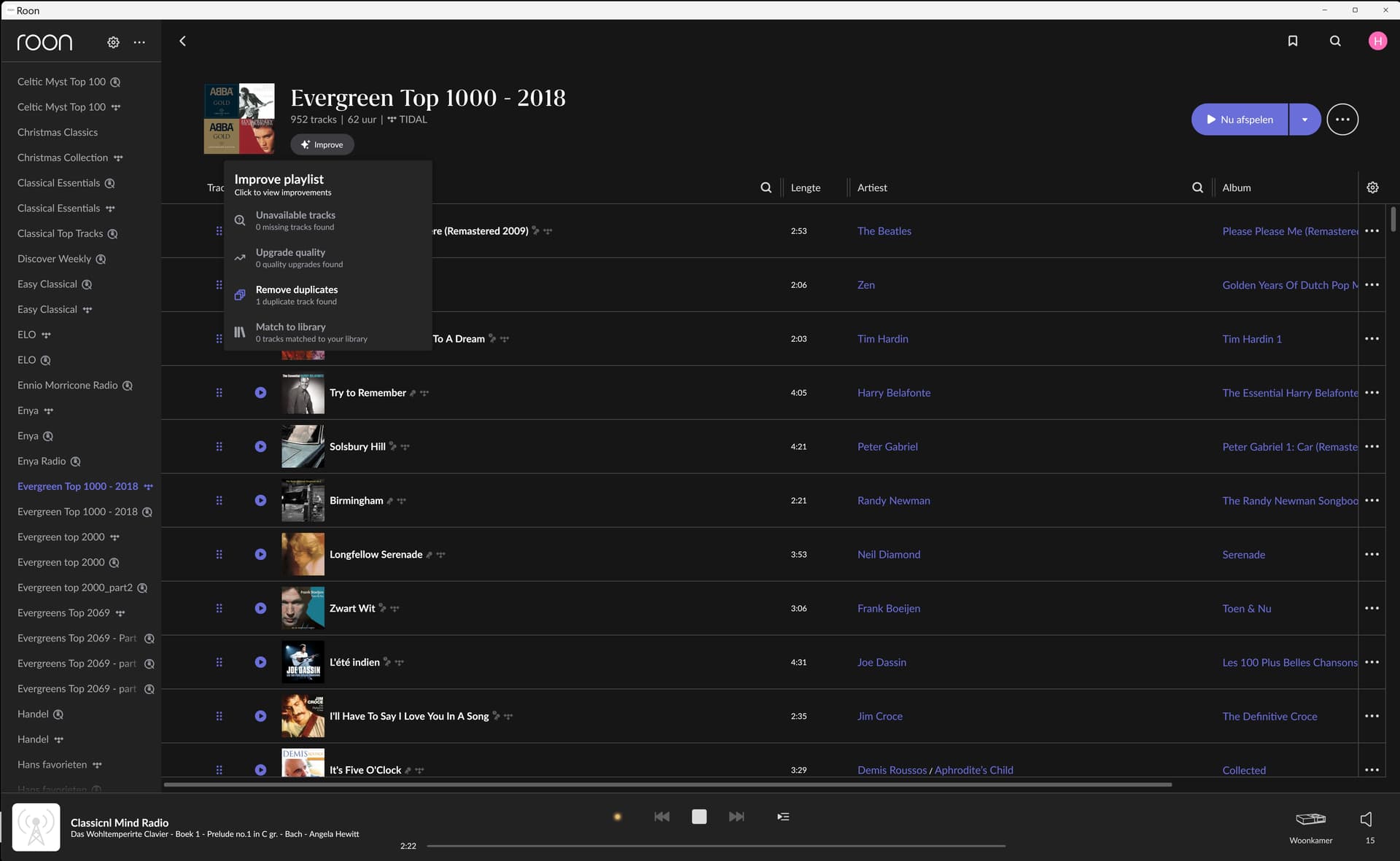 I am curious about Roon’s analysis of these screenshots! And I am also curious if someone can explain why performing the same actions on the same playlist makes the “Improve-button” disappear on the Qobuz playlist screen and endlessly comming back with the same improve suggestions on the same Tidal playlist. Who…?