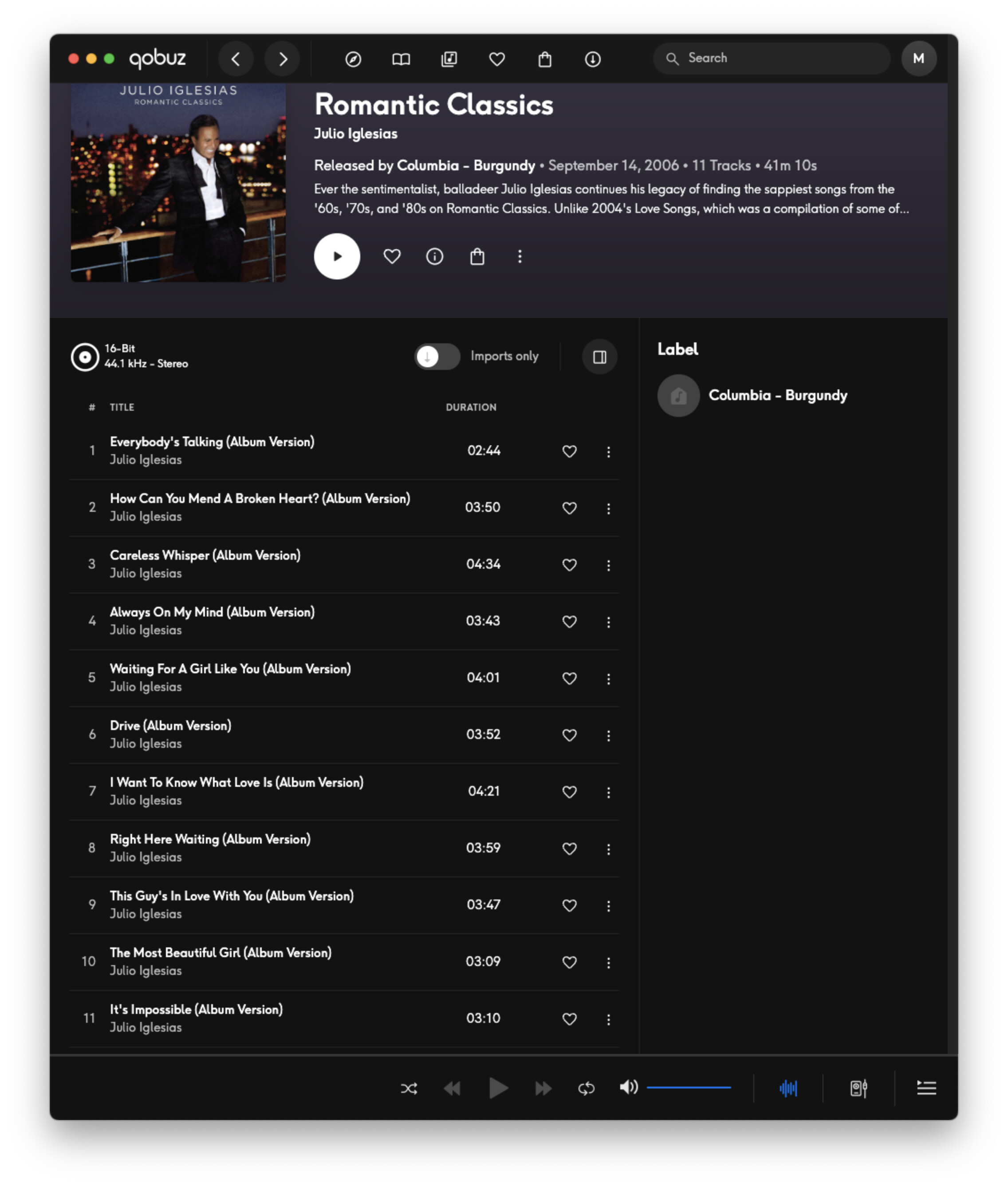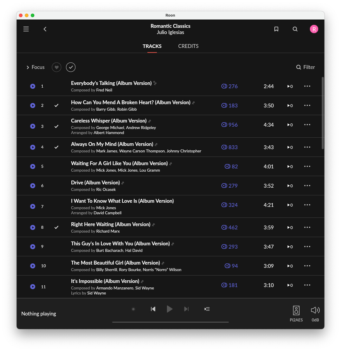On some albums, the tracks appear to be incorrectly indexed, with wrong song titles displayed. For example, on the album Julio Iglesias – Romantic Classics, all track names are incorrect when viewed and played through Roon. I verified the same album directly on TIDAL and Qobuz, and there the track names and metadata are correct.