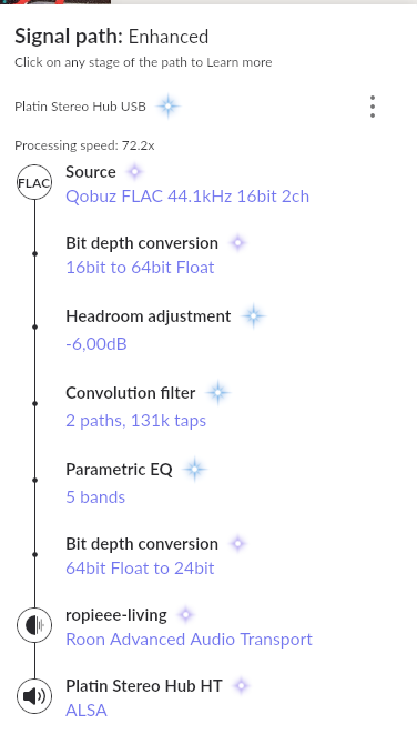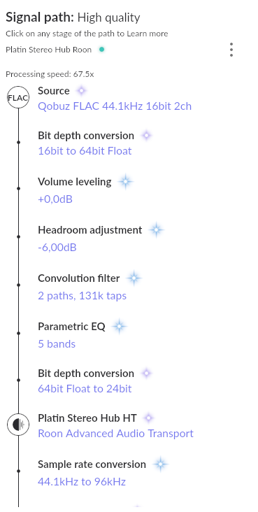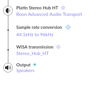I think you are basically correct, but it it seems that it’s not the upsampling that causes the green “High Quality” nomination, Roon seems to think that the final transmission from the Platinum Hub upsample and WiSA wireless link is lossy.