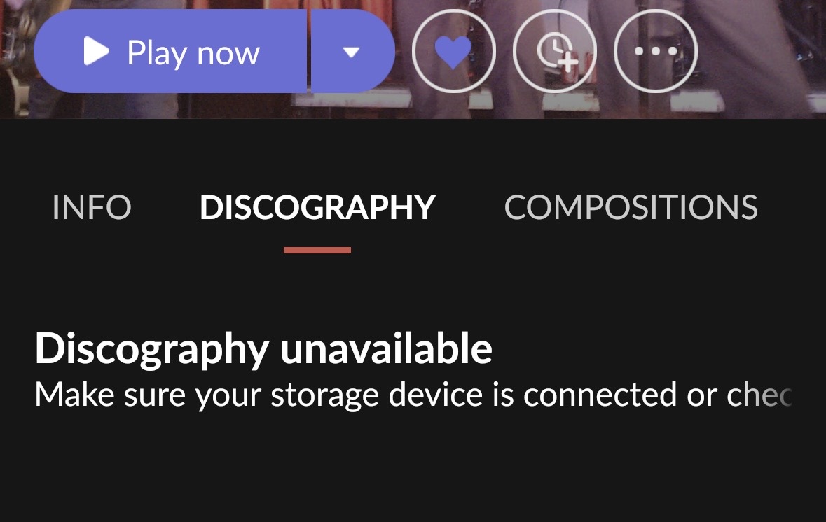 I was using the search bar at the top of the screen to search for an artist. When the artist screen populated, I then clicked the Discography menu option. This usually references Qobuz I believe, as it shows artists and albums that are not in my library. The error message appeared before I had the option to reduce the results by clicking on the library icon.