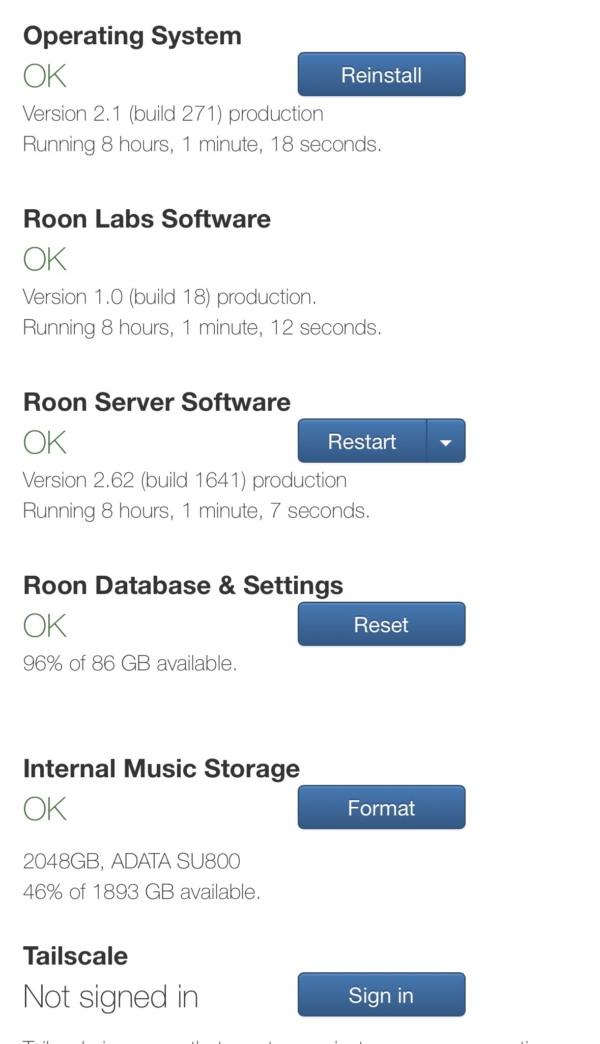 It seems to have resolved itself after a few reboots of the Roon software and the Nucleus One itself. Happy to close this ticket and hopefully it was just a temporary blip.