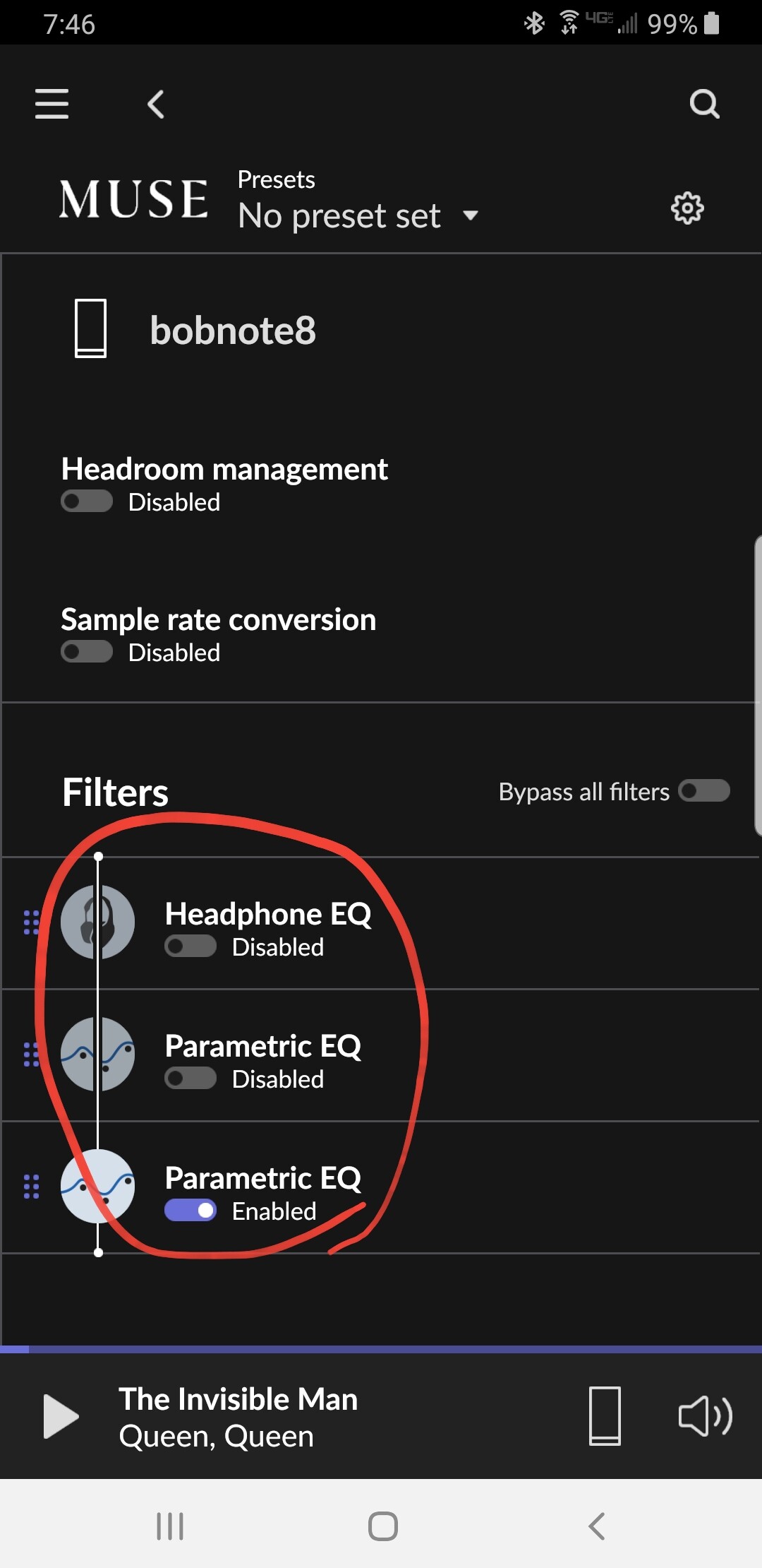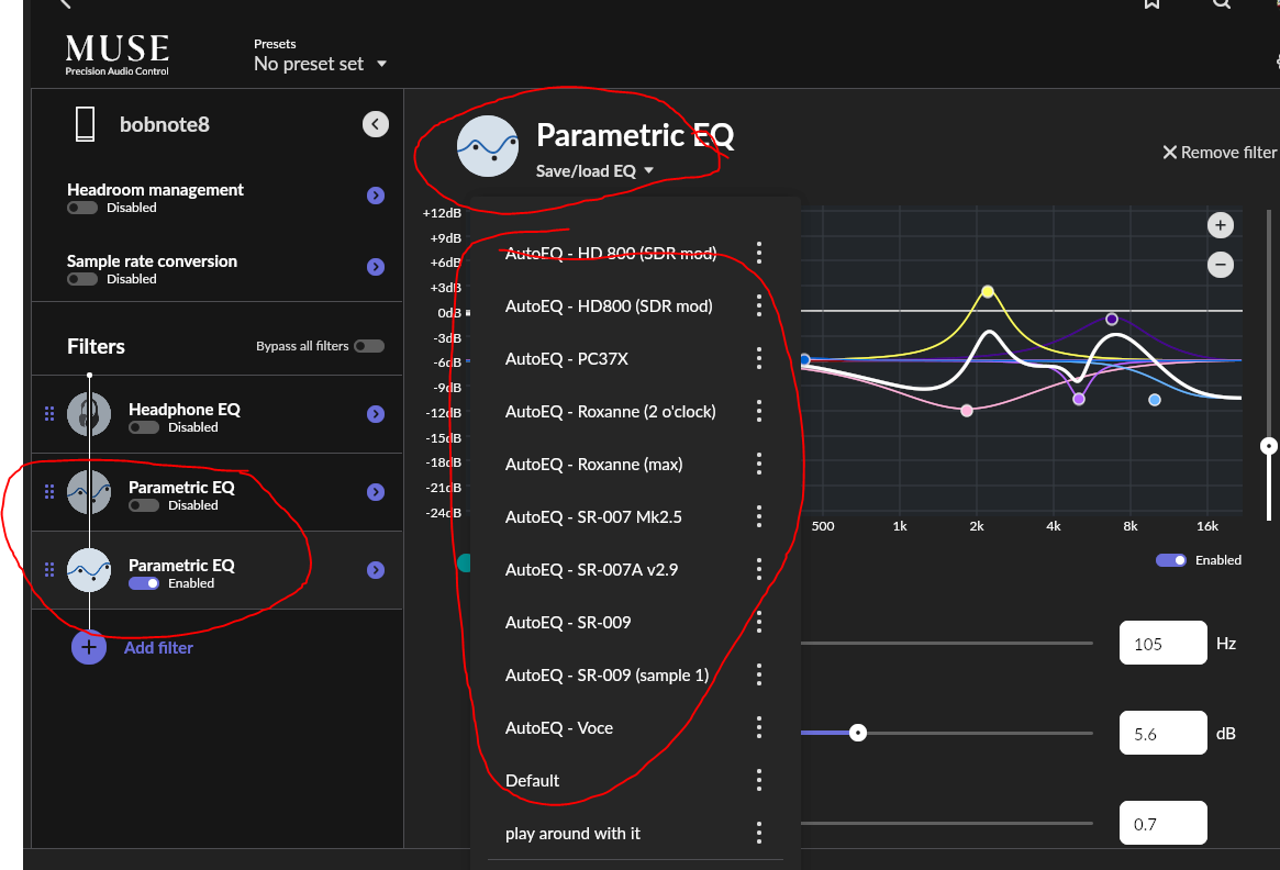 It would be nice if we could rename (or add a description to) the Parametric EQs so that we could select the correct one more easily and the remote app. Right now you have to remember which one you applied which filter to. Same thing for the headphone EQ. It would be nice if it indicated which filter was applied outside of the muse page.