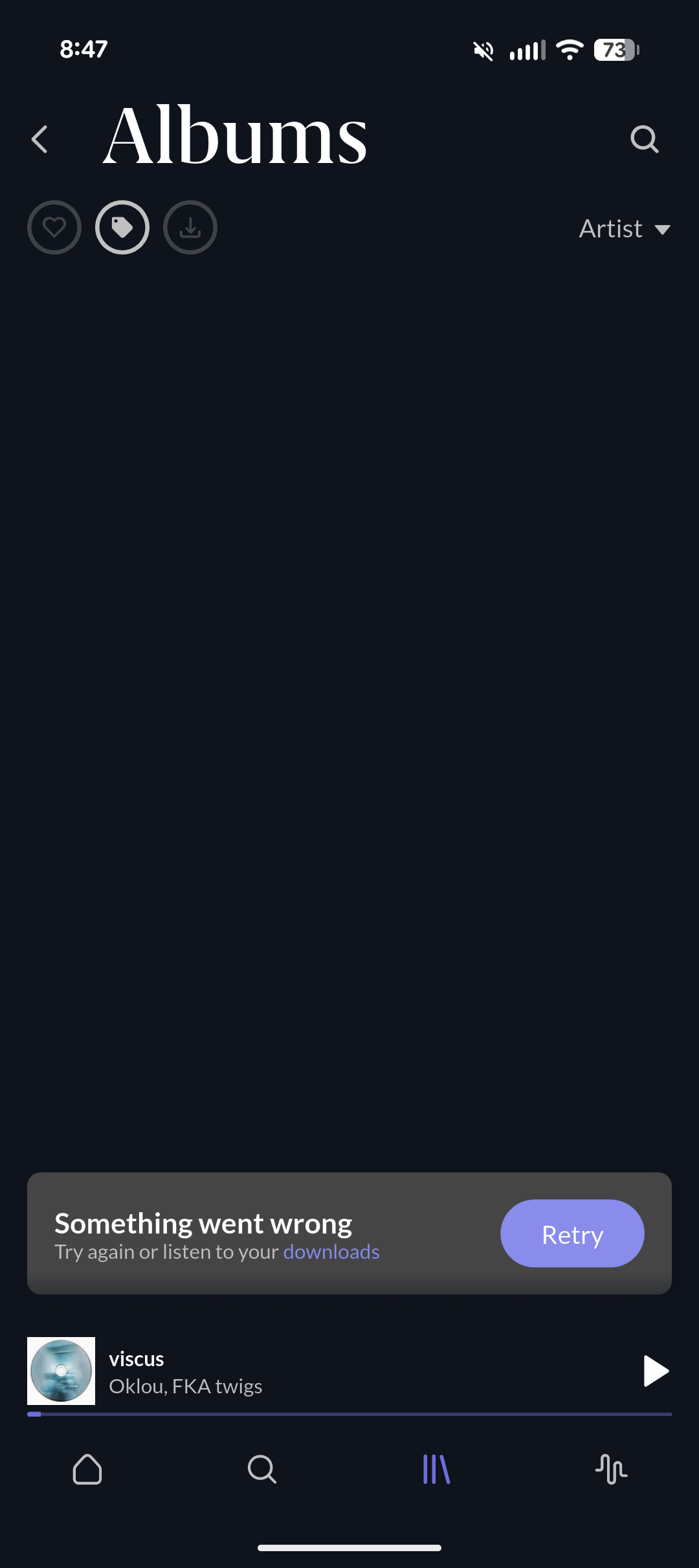 on my iPhone 13 Pro, iOS 26.1 when I go to my Albums I just got the error message “Something went wrong” but no album is showing. All other views (Artists, Tracks…) are working perfectly fine.