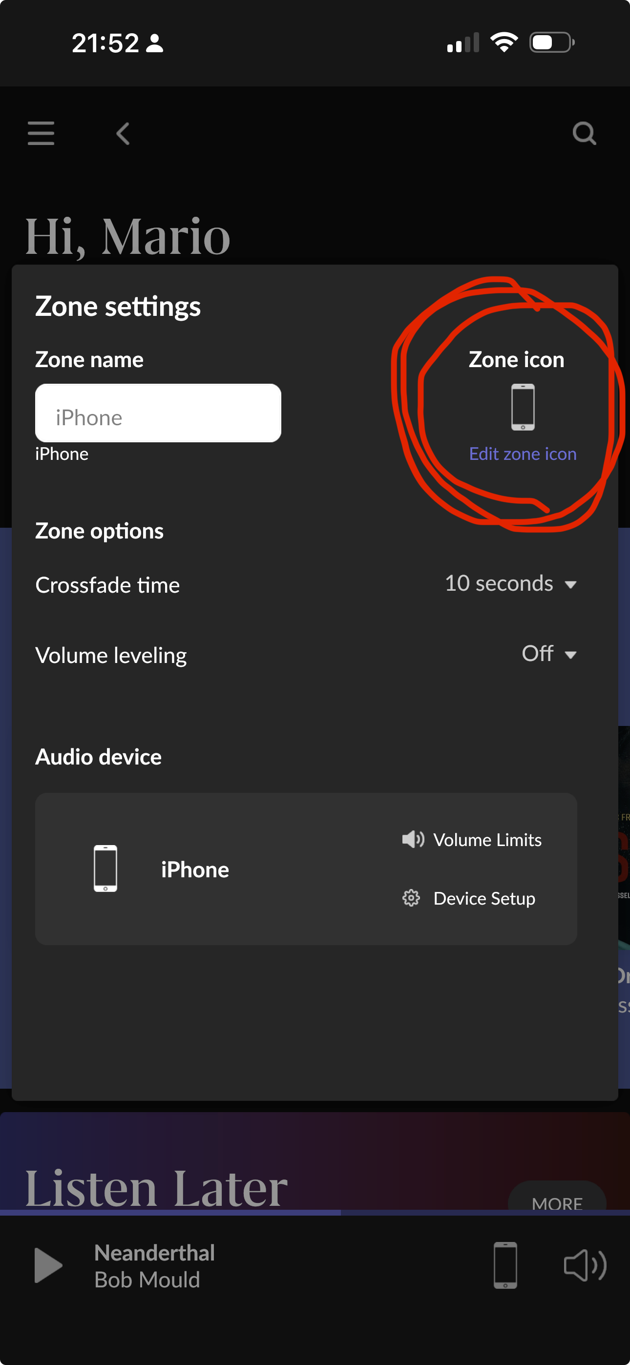 I kinda got it working, I did enable it as your mentioned. However the icon displayed is wrong, in the audio zone window . It’s a ’ speaker’ not the iphone icon? However all else seems ok?