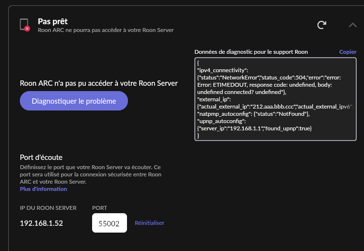 First, try changing the port assignment in the Roon Settings → ARC page you shared above. Something like 56000 might work if 55002 is in use by another program or machine.
