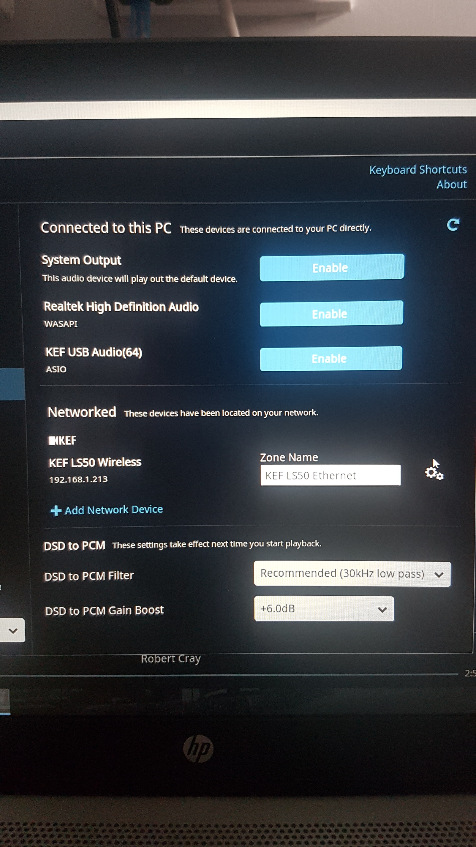 The KEFs are connected via ethernet direct to a powerline and Roon is running on my laptop.
